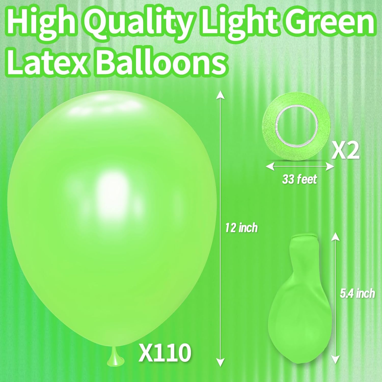 - 110-Count 12" Mint Green Latex Balloons:Premium bulk pack of 110 refreshing 12-inch balloons—perfect for spring weddings, gender-neutral baby showers, or spa-themed events with a calming pastel hue.