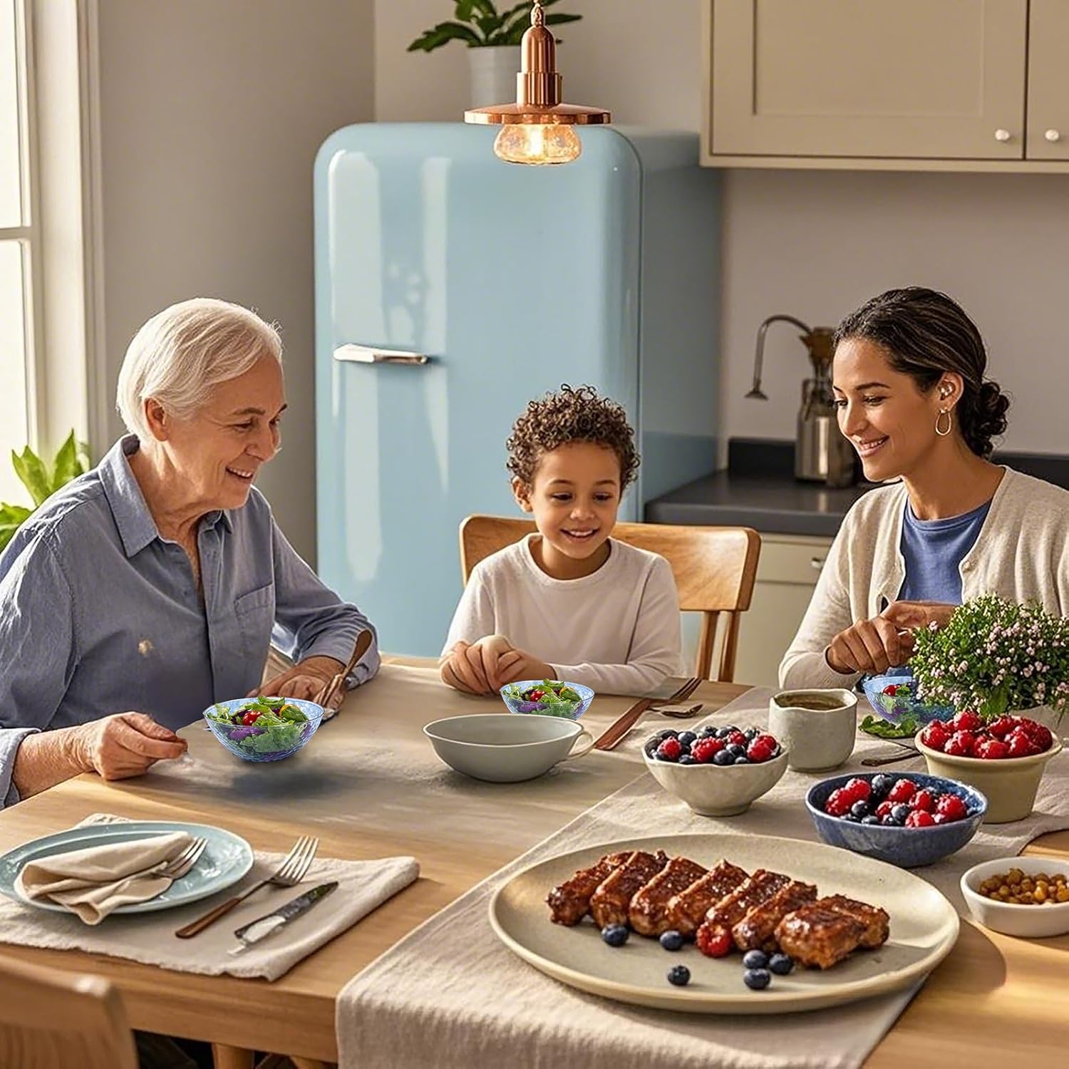 - 20 Blue plastic bowls - High-quality clear plastic bowls made from sturdy, durable plastic. Each disposable plastic bowl is round and can hold 12 ounces of food. Ideal for any party, special event, or occasion
