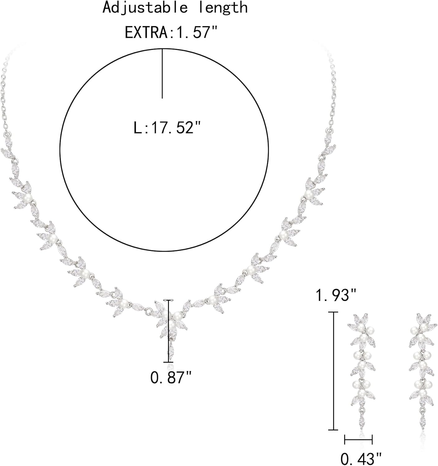- Size:44.5cm(17.52")-48.5cm(19.09"), Earring Size:4.9cm(1.93")by1.1cm(0.43") Pendant Size:19cm(7.48")by2.2cm(0.87") Total Weight:20g Stone Color: White Silver-Tone