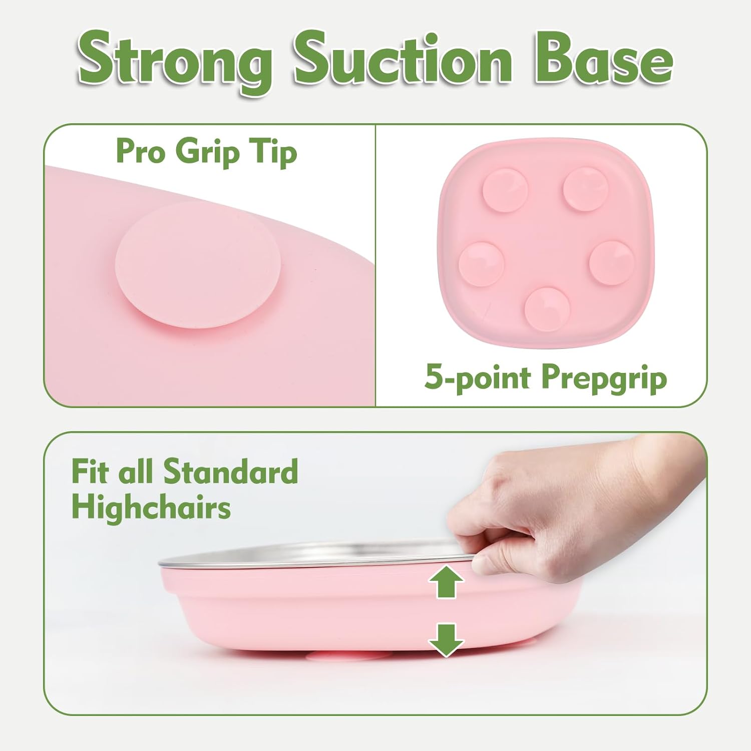 - Food grade silicone suction cups: There are five silicone suction cups on the bottom of the dinner plate, which can be firmly suctioned to the tabletop to prevent toddler from touching over the tableware,Perfect for toddlers learning to be independent - no more flipping plates at mealtime!
