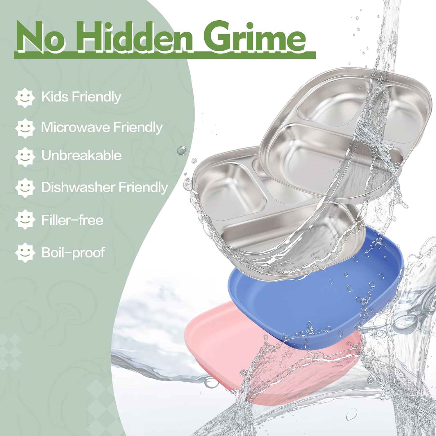 - Scientifically designed: with a large 10 oz. compartment for entrees and two 4 oz. compartments for sides, snacks or vegetables, and a 1.8inch height to prevent spills, these plates are perfect for toddlers who are learning to eat on their own, and make meals easier!