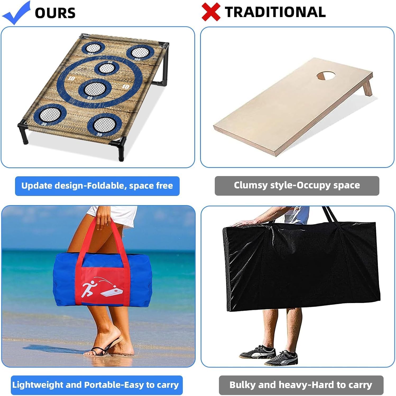 - Sturdy and Strong: Built to last with rugged PVC and tear-resistant 420D Oxford cloth, this corn hole toss game withstands wear and tear, ensuring durability and long-lasting fun for endless play