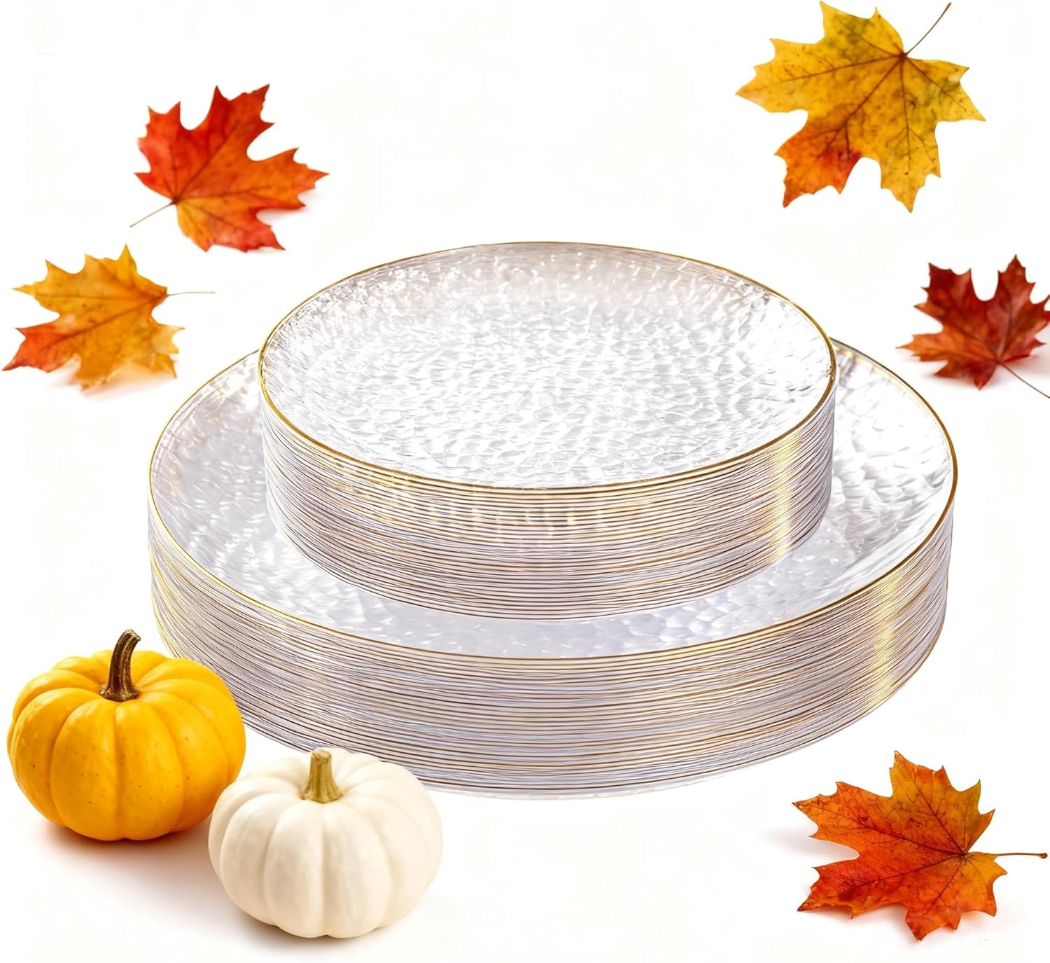 - 【Exquisite Hammered】Each clear plastic plates features a stunning hammered texture and a luxurious gold rim, adding a touch of sophistication to your gatherings. These plastic plates disposable elevate any table setting, making them ideal for weddings, parties, or upscale events where you want to impress your guests.