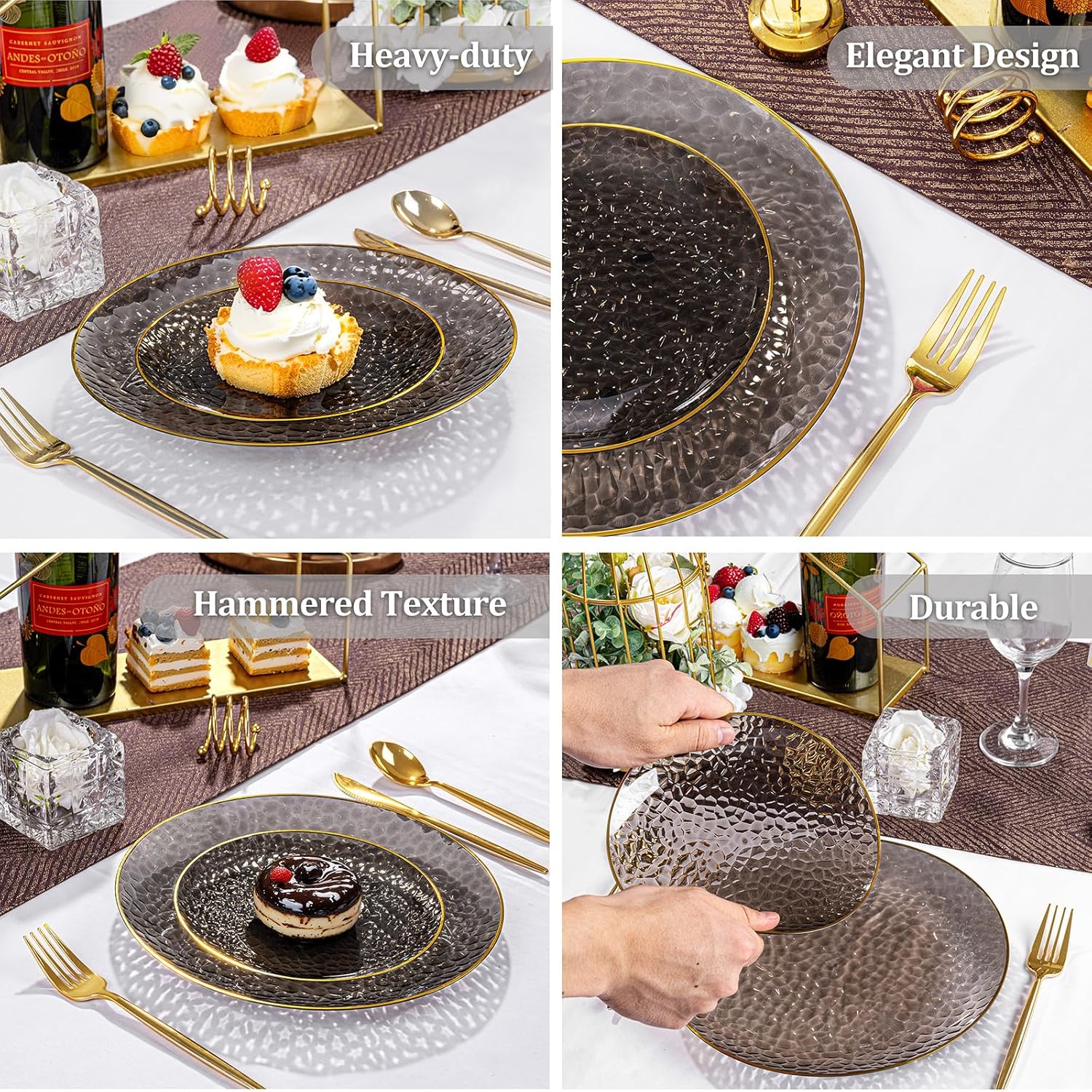 - 【Exquisite Hammered】Each black disposable plates features a stunning hammered texture and a luxurious gold rim, adding a touch of sophistication to your gatherings. These plastic plates disposable elevate any table setting, making them ideal for weddings, parties, or upscale events where you want to impress your guests.