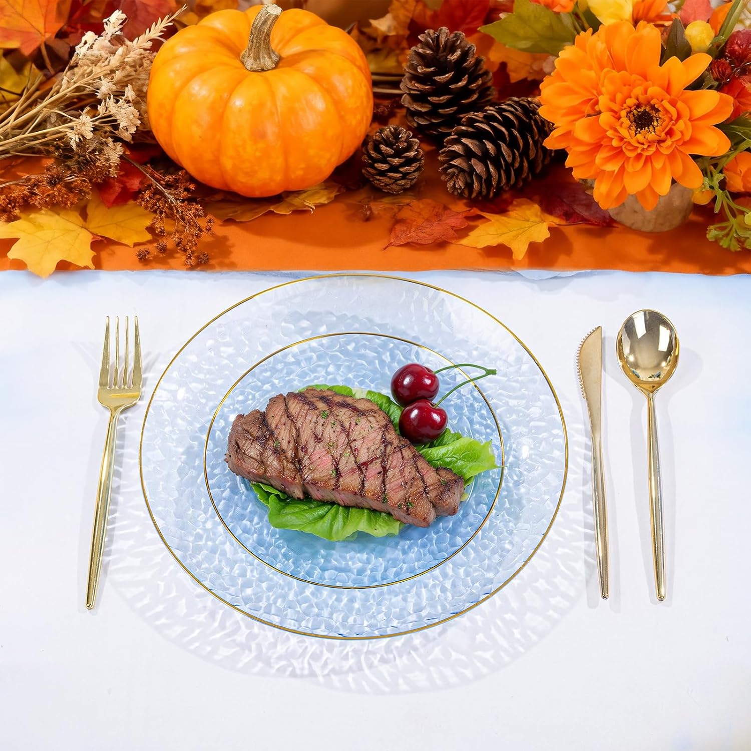 - 【Elegant Design】Our blue plastic plates feature glossy golden edges and a delicate hammer-textured style - a perfect blend of modern refinement and handcrafted charm. Imitate the elegance of handcrafted products while maintaining the lightness and convenience of plastic plates disposable.