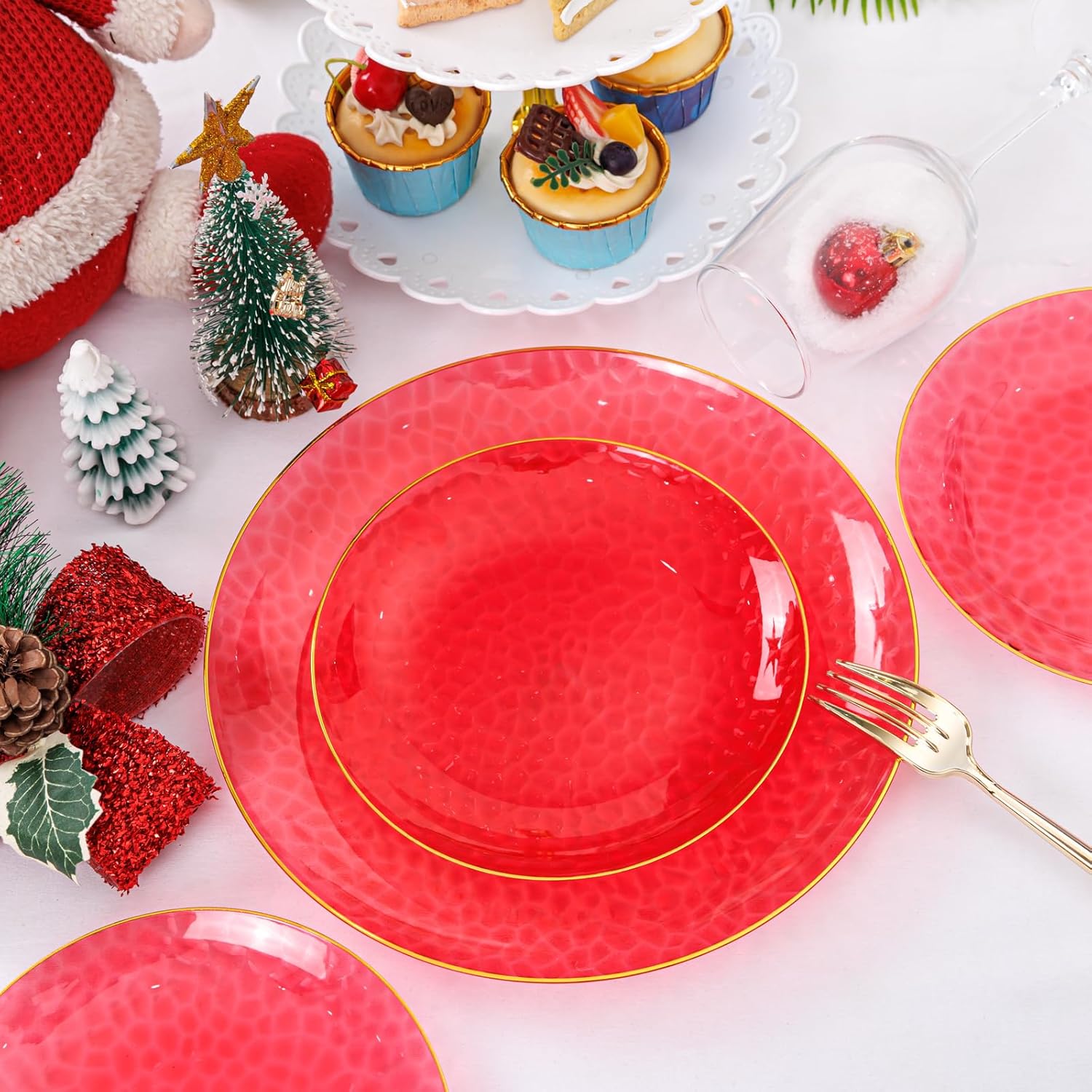 - 【Elegant Design】Our red plastic plates feature glossy golden edges and a delicate hammer-textured style - a perfect blend of modern refinement and handcrafted charm. Imitate the elegance of handcrafted products while maintaining the lightness and convenience of plastic plates disposable.