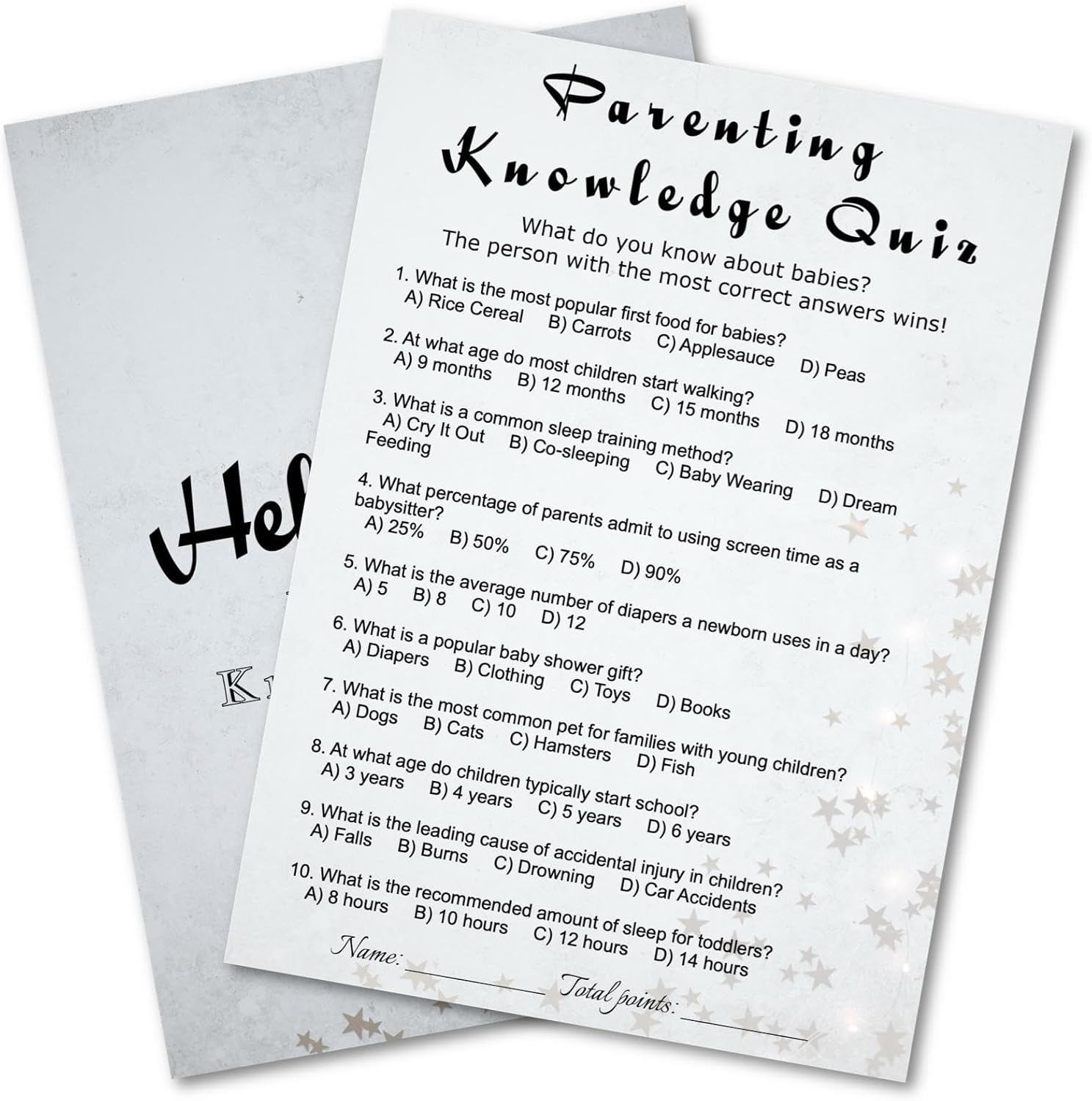 Baby Shower Parenting Knowledge Trivia Game Cards - 30 Players Minimalist Party Game Light Gray Stars Ready to Play Instant Fun Answer Keys Included 5x7 Inch (Knowledge Quiz)