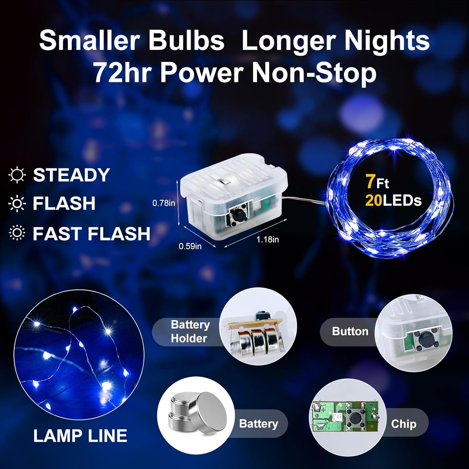 Aogist 12 Pack Fairy Lights 3 Modes 7ft 20 LED Waterproof,Battery Operated Silver Wire Firefly Starry Moon Mini String Lights for Mason Jars Christmas DIY Crafts Wedding Party Bedroom,Blue