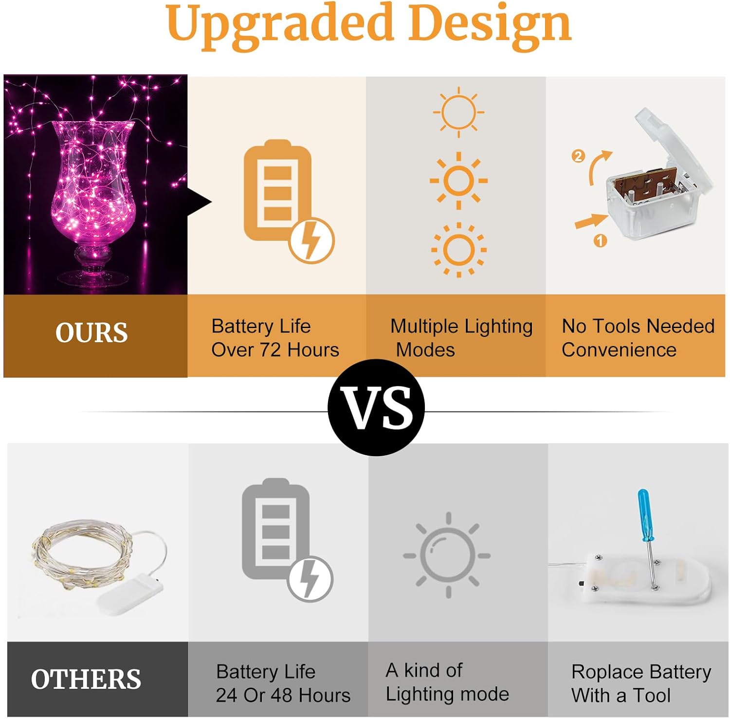 Aogist 24 Pack Fairy Lights 3 Modes 7ft 20 LED Waterproof,Battery Operated Silver Wire Firefly Starry Moon Mini String Lights for Mason Jars Christmas DIY Crafts Wedding Party Bedroom,Pink