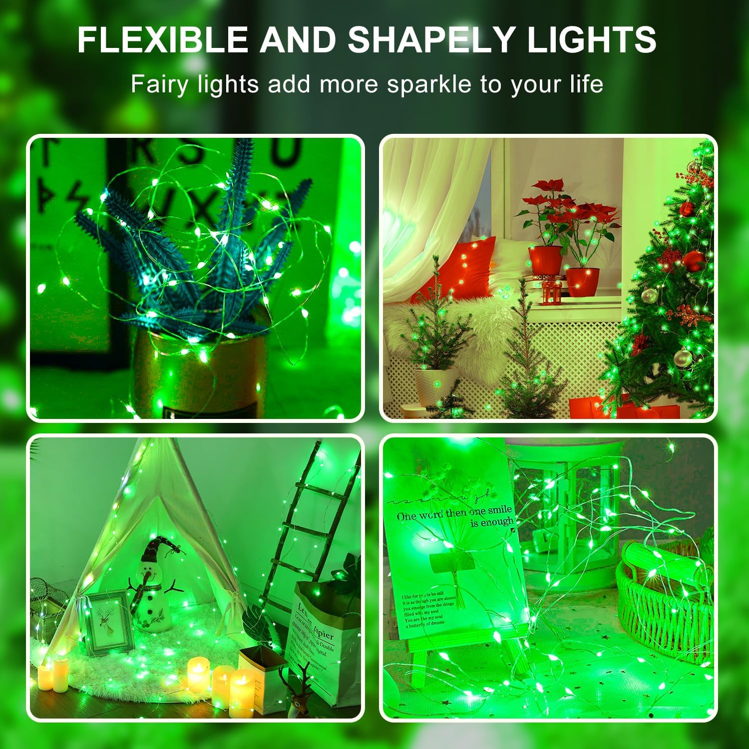 Aogist 24 Pack Fairy Lights 3 Modes 7ft 20 LED Waterproof,Battery Operated Silver Wire Firefly Starry Moon Mini String Lights for Mason Jars Christmas DIY Crafts Wedding Party Bedroom,Green