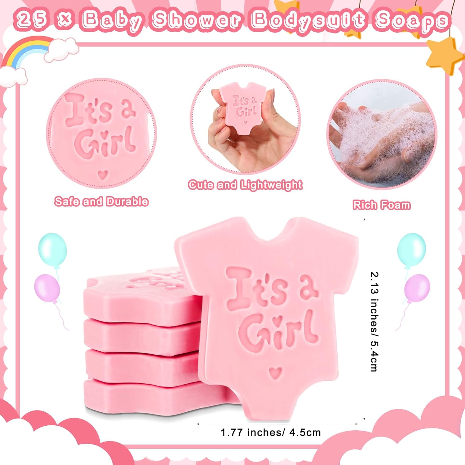 25 Sets Baby Shower Soap Favors for Guests - Boy Girl Mini Handmade Soaps with Thank You Tags and Organza Bags for Shower Gender Reveal Party Favors (Pink,Baby Shirt)