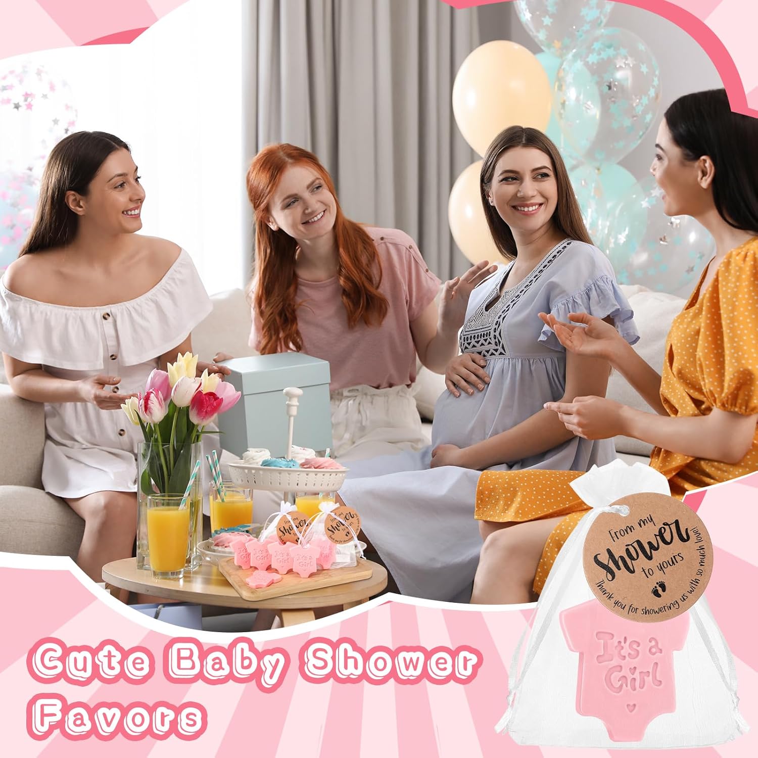 - Baby Shower Soap Favors Set: this package includes 25 baby shape soaps, 25 thank you tags, and 25 white organza bags; Our beautiful combination of soap, tags, and organza bags will meet your daily use and gift needs for various occasions such as weddings, baby showers, bridal showers, and more