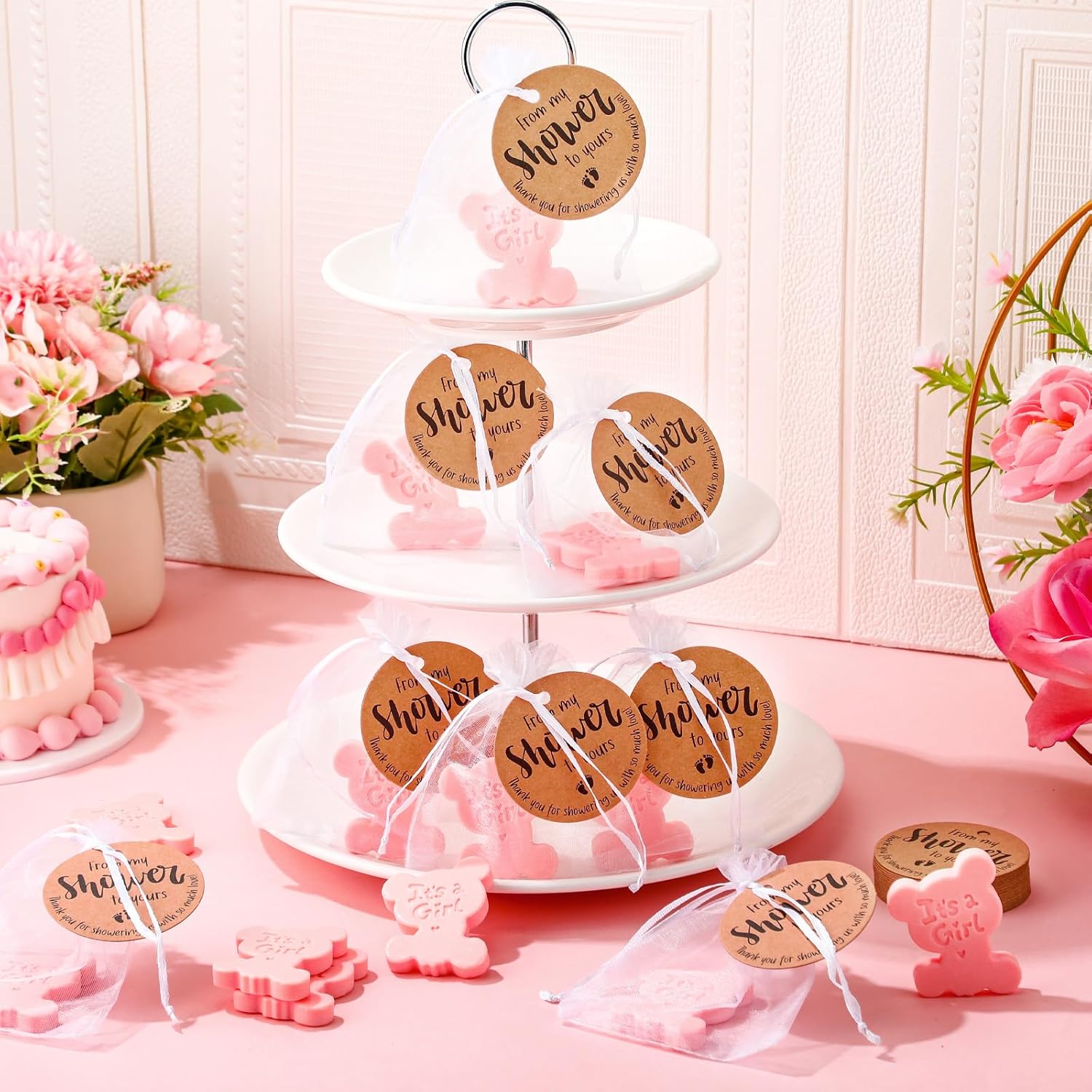 - Baby Shower Soap Favors Set: this package includes 25 bear shape soaps, 25 thank you tags, and 25 white organza bags; Our beautiful combination of soap, tags, and organza bags will meet your daily use and gift needs for various occasions such as weddings, baby showers, bridal showers, and more