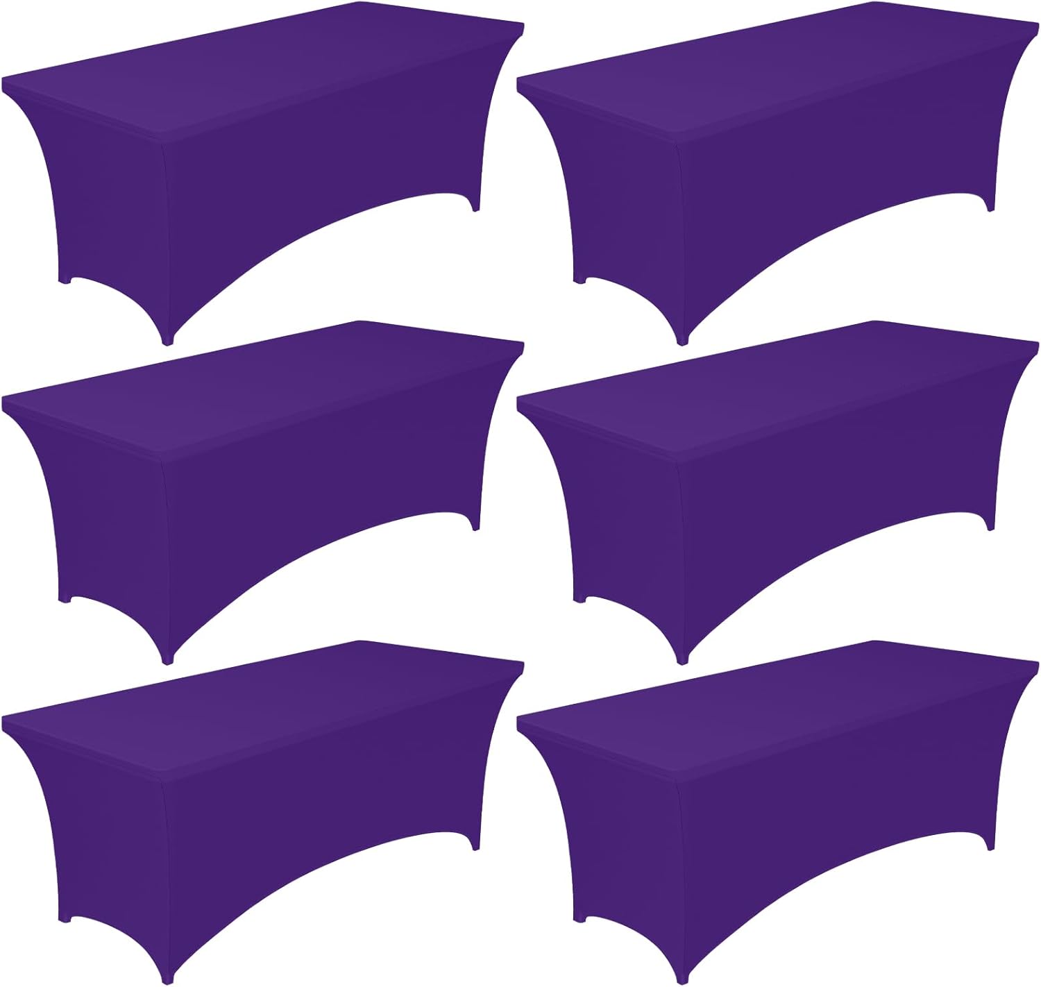 Pureegg Spandex Tablecloth 6ft - 6 Pack, Fitted and Stretch Table Cover for Rectangle Tables, Wrinkle-Resistant and Secure Fabric for Outdoor, Picnic, Party, Wedding, Banquet and Birthday, Purple