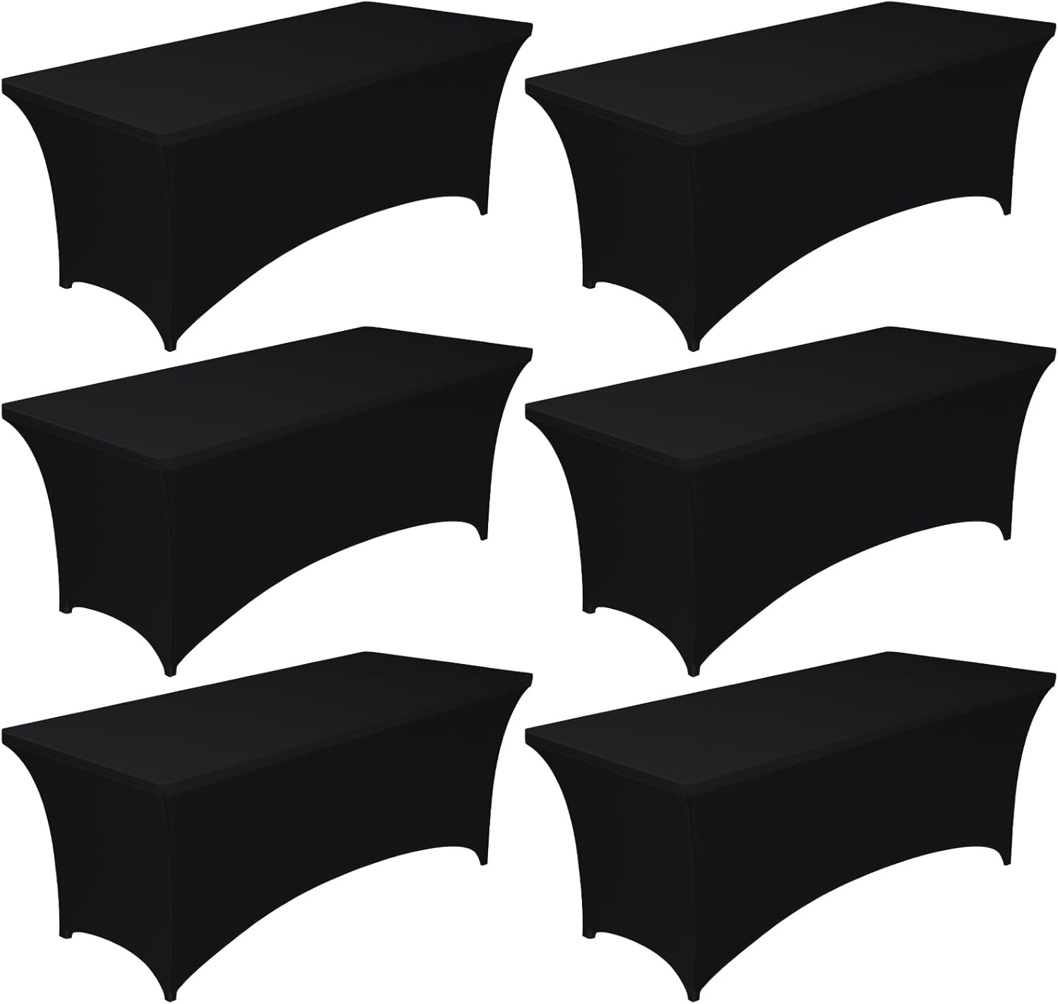 Pureegg Spandex Tablecloth 6ft - 6 Pack, Fitted and Stretch Table Cover for Rectangle Tables, Wrinkle-Resistant and Secure Fabric for Outdoor, Picnic, Party, Wedding, Banquet and Birthday, Black