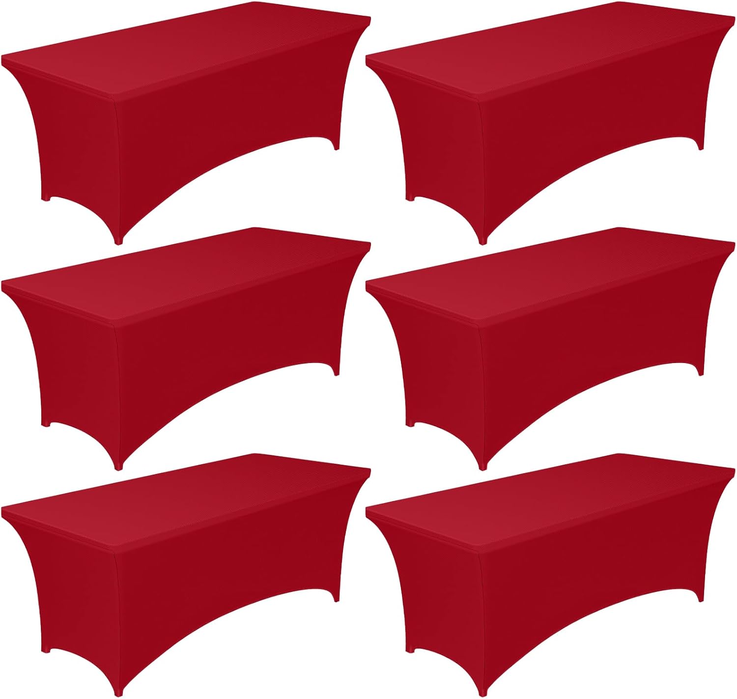 Pureegg Spandex Tablecloth 6ft - 6 Pack, Fitted and Stretch Table Cover for Rectangle Tables, Wrinkle-Resistant and Secure Fabric for Outdoor, Picnic, Party, Wedding, Banquet and Birthday, Red