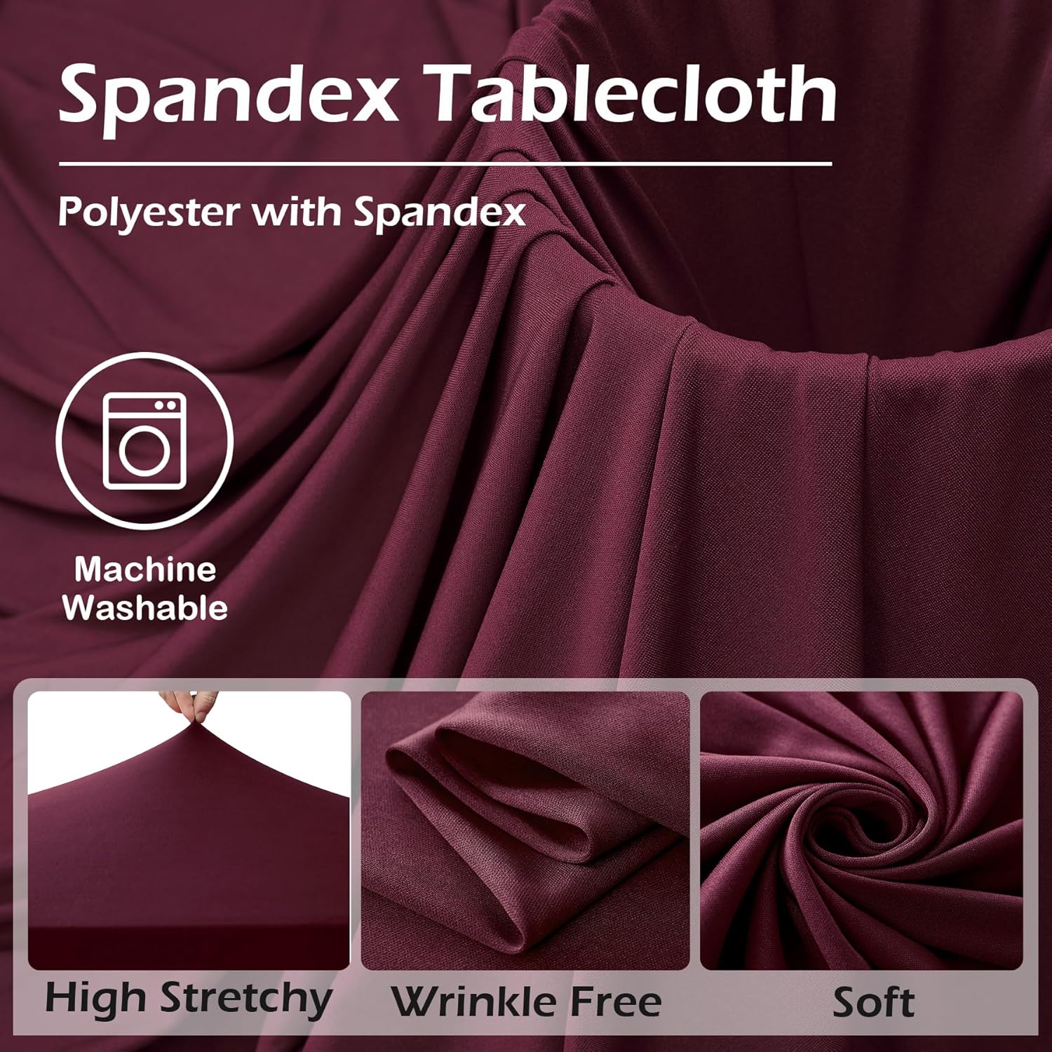 - Why Choose Burgundy Spandex Tablecloth 6ft - Spandex material is a stretch table cloths for 6 ft tables with high stretchy, wrinkle free, durable and easy to clean, allow table covers for 6 foot tables to be used for a long time while maintaining a good shape. manteles de mesa para fiestas.