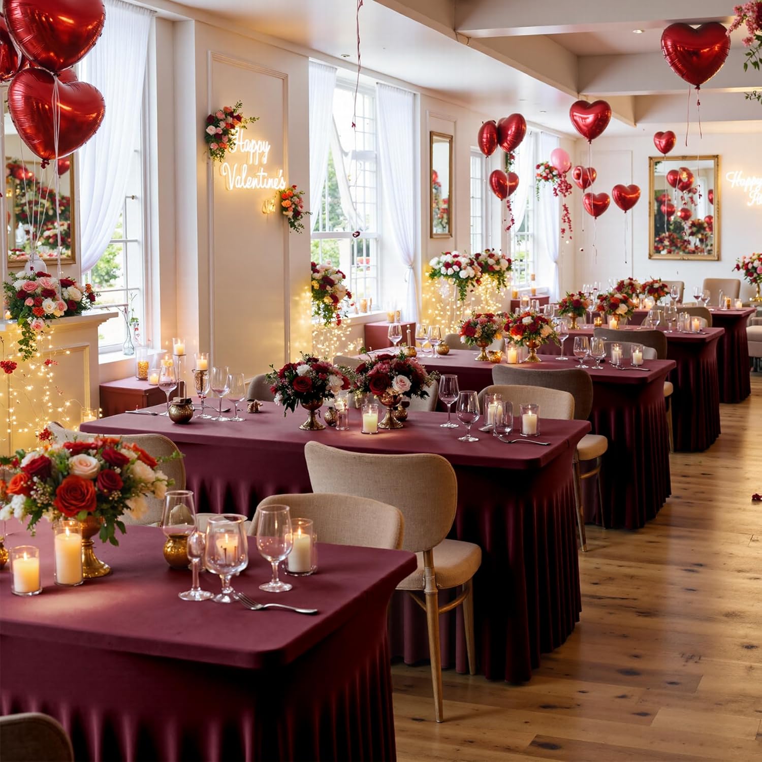 2 pk Burgundy Spandex Tablecloth 6ft with Ruffled Tables,Wrinkle Free High-Stretch Fitted Table Cloths for 6 Foot Rectangle Tables,Elastic Maroon Spandex Table Covers 6 ft for Weddings Banquet Dinning