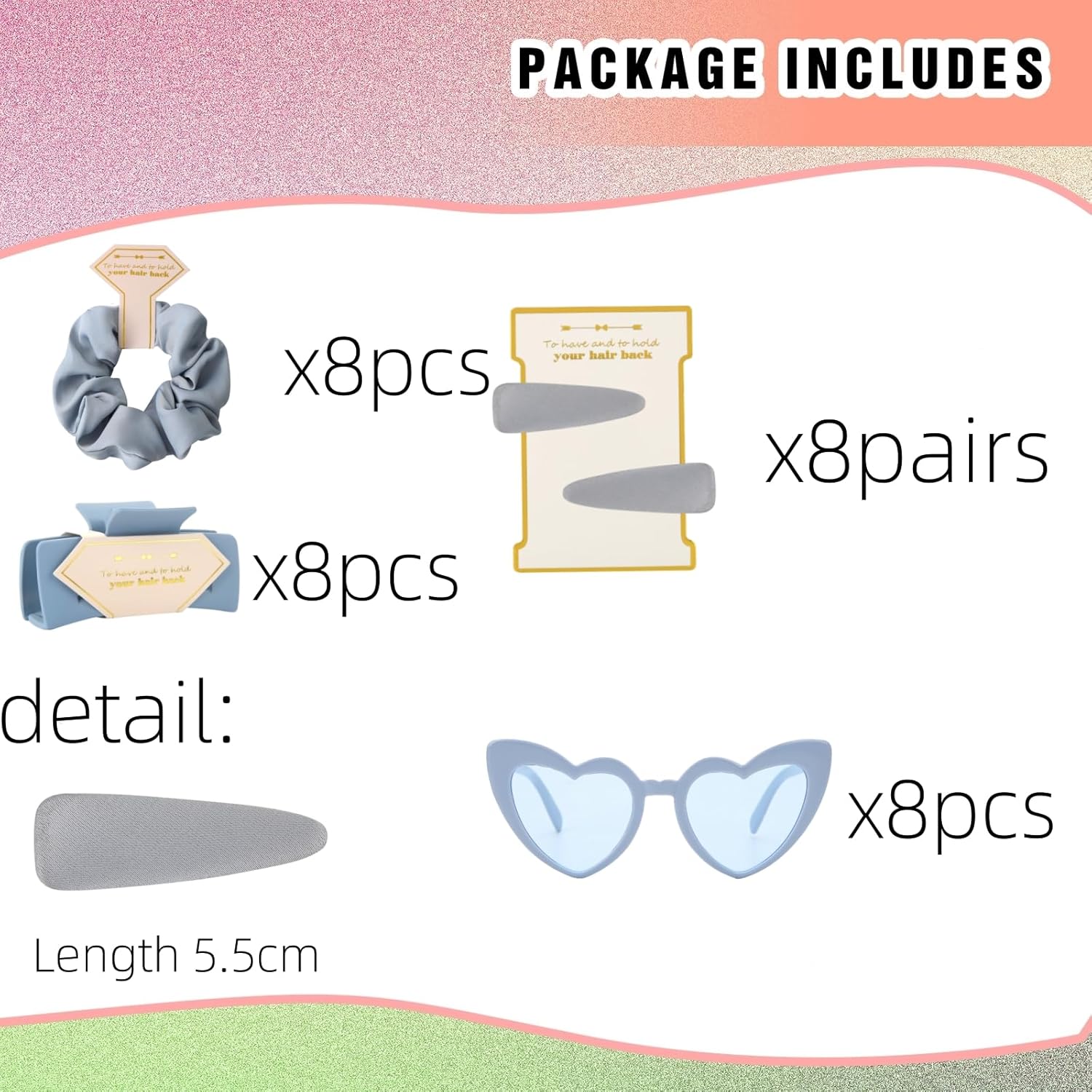 - Bridesmaid Proposal Gifts Sunglasses bulk pack includes 8pcs 4.1 inch hair Claws clips and 8pcs Bachelorette heart sunglasses and 8pcs Bridesmaid Scrunchies.1pcs for you and 7pcs for your friend, Perfect as bachelorette party favors sunglasses and bridesmaid sunglasses gifts!