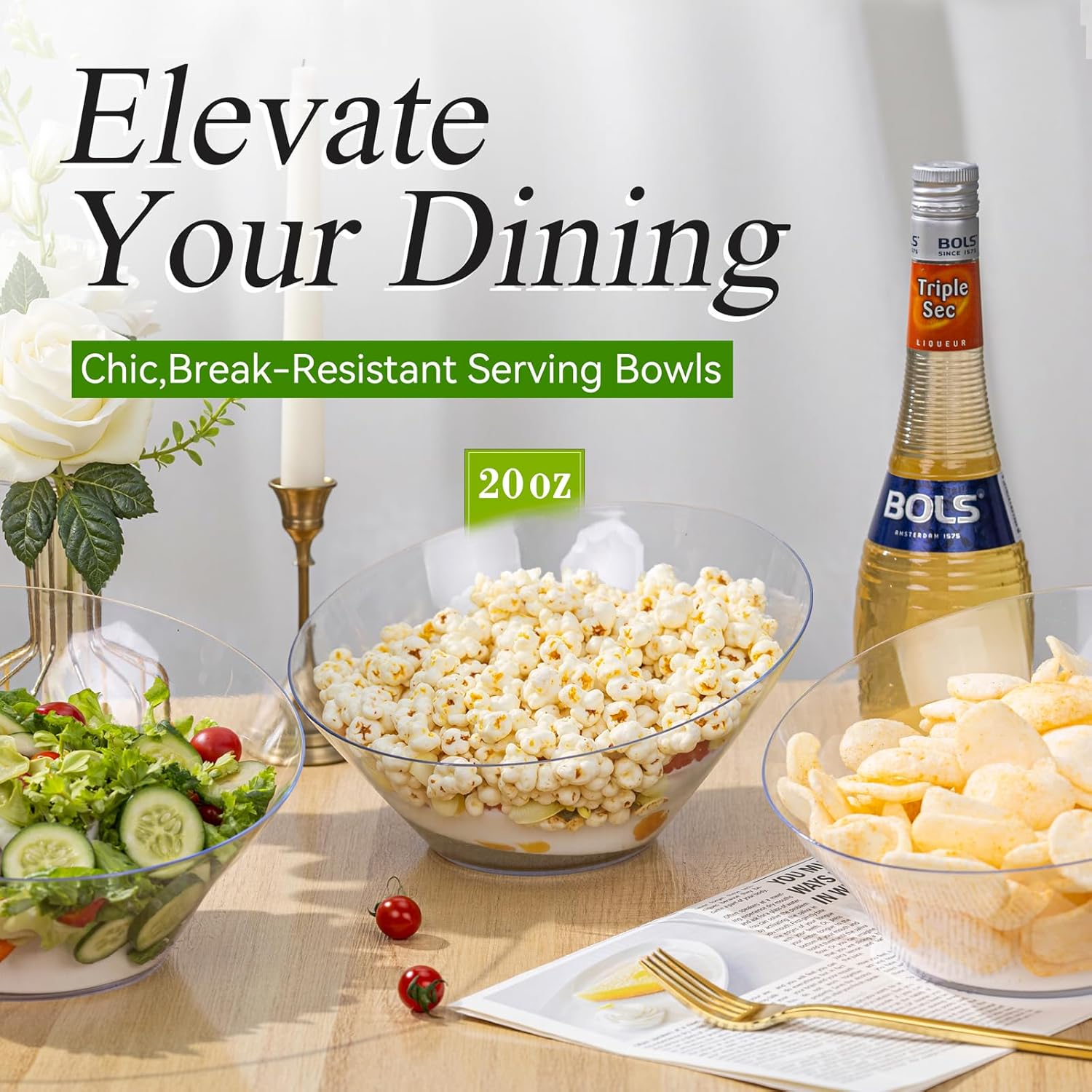 - QUALITY CONTROL—Made from high-quality plastic, our salad bowls are sturdy enough to be washed by hand and reused. These clear plastic party bowls combine the convenience of disposable items with durability. Say goodbye to fragile disposable options and enjoy a worry-free entertaining experience. These reliable candy bowls are suitable for any occasion.
