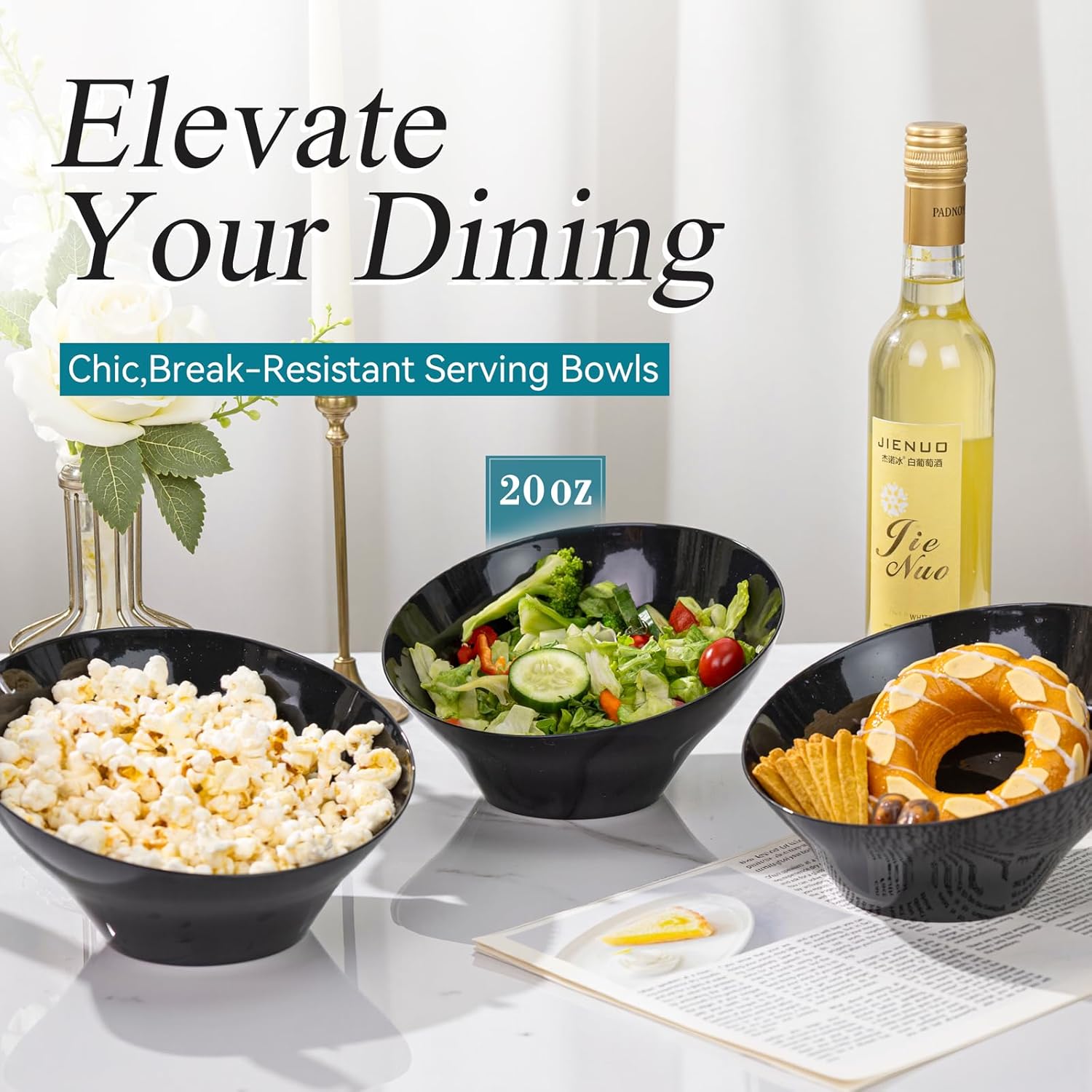 - QUALITY AND SERVICE - Our 20-ounce black plastic bowls are ideal for family gatherings, parties, holidays, and movie nights. They can be used as plastic bowls, party bowls, or disposable bowls for snacks, salads, or desserts. We are committed to providing high-quality products and customer satisfaction. If you are not satisfied, we will resolve the issue with friendly and efficient service so that you can trust us with confidence.