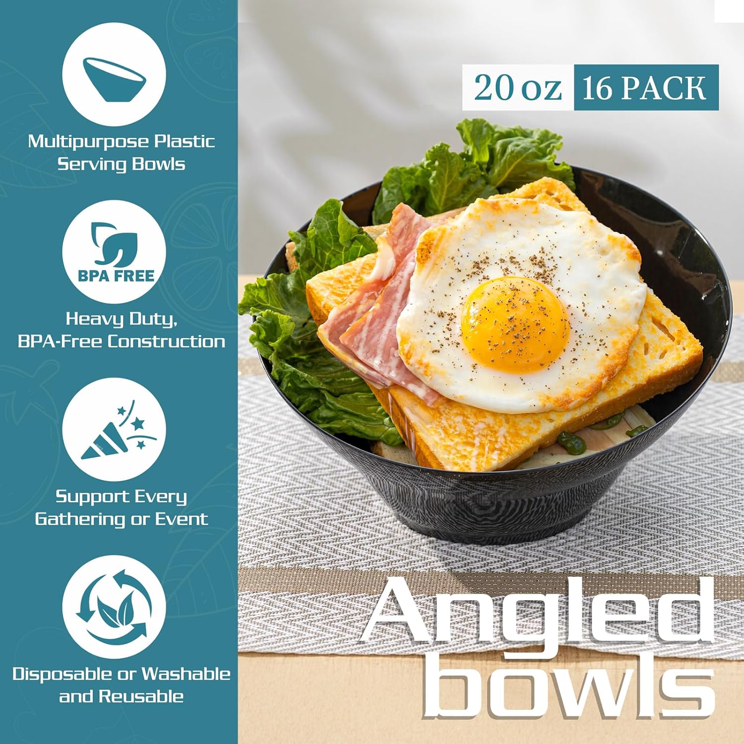 - QUALITY CONTROL—Made from high-quality plastic, our salad bowls are sturdy enough to be washed by hand and reused. These black plastic party bowls combine the convenience of disposable items with durability. Say goodbye to fragile disposable options and enjoy a worry-free entertaining experience. These reliable candy bowls are suitable for any occasion.