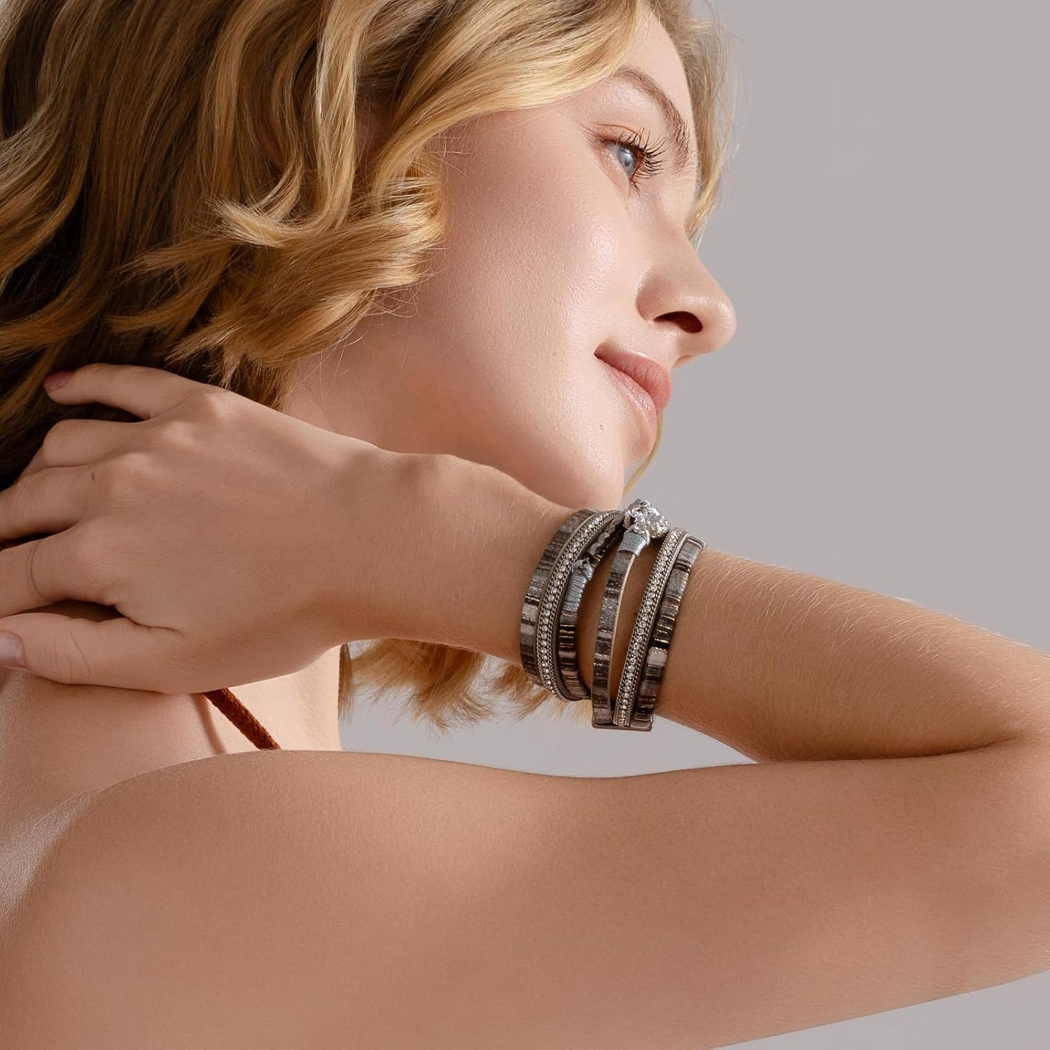 FANCY SHINY Leather Wrap Bracelet Boho Cuff Bangle Bracelets Crystal Bead Bracelet with Magnetic Clasp Jewelry Gifts for Women