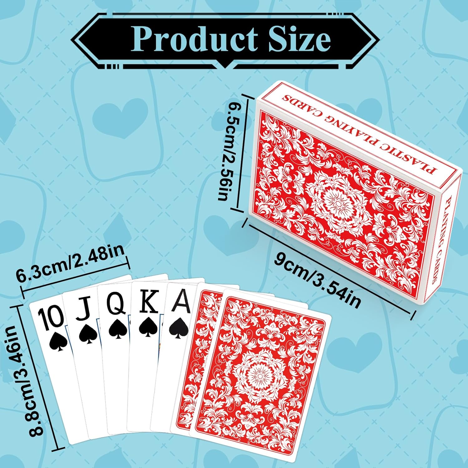 Plastic Playing Cards Waterproof Cards Poker Card 2 Pack Playing Card Large Print for Adults Seniors, Deck of Card Set Poker Cards for Beach Trip Pool Party Games (Red)