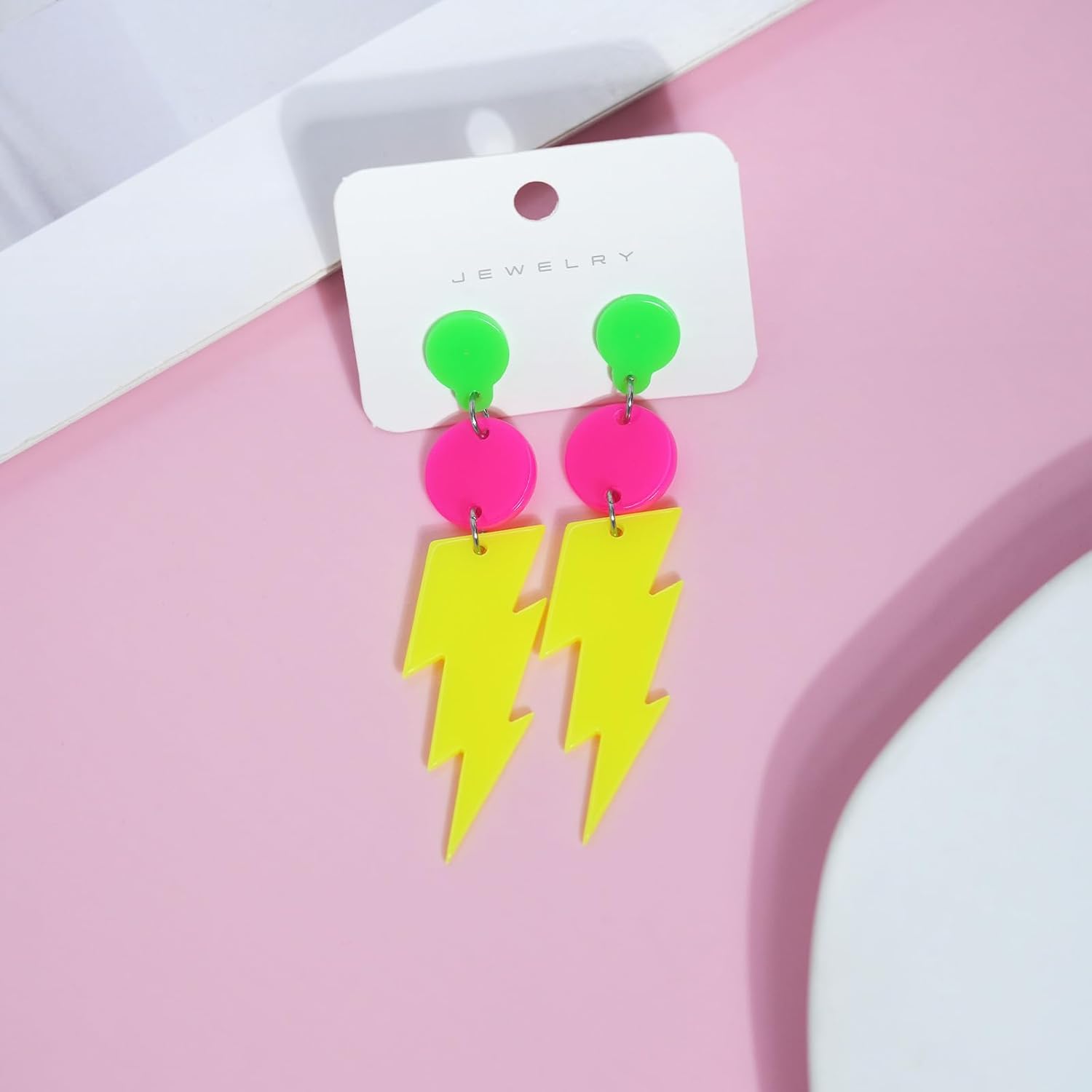 80s Neon Earrings for Women Acrylic Lightning Bolt Drop Earrings Retro 80s 90s Glow Party Accessories Neon Jewelry for Halloween Costume Outfit