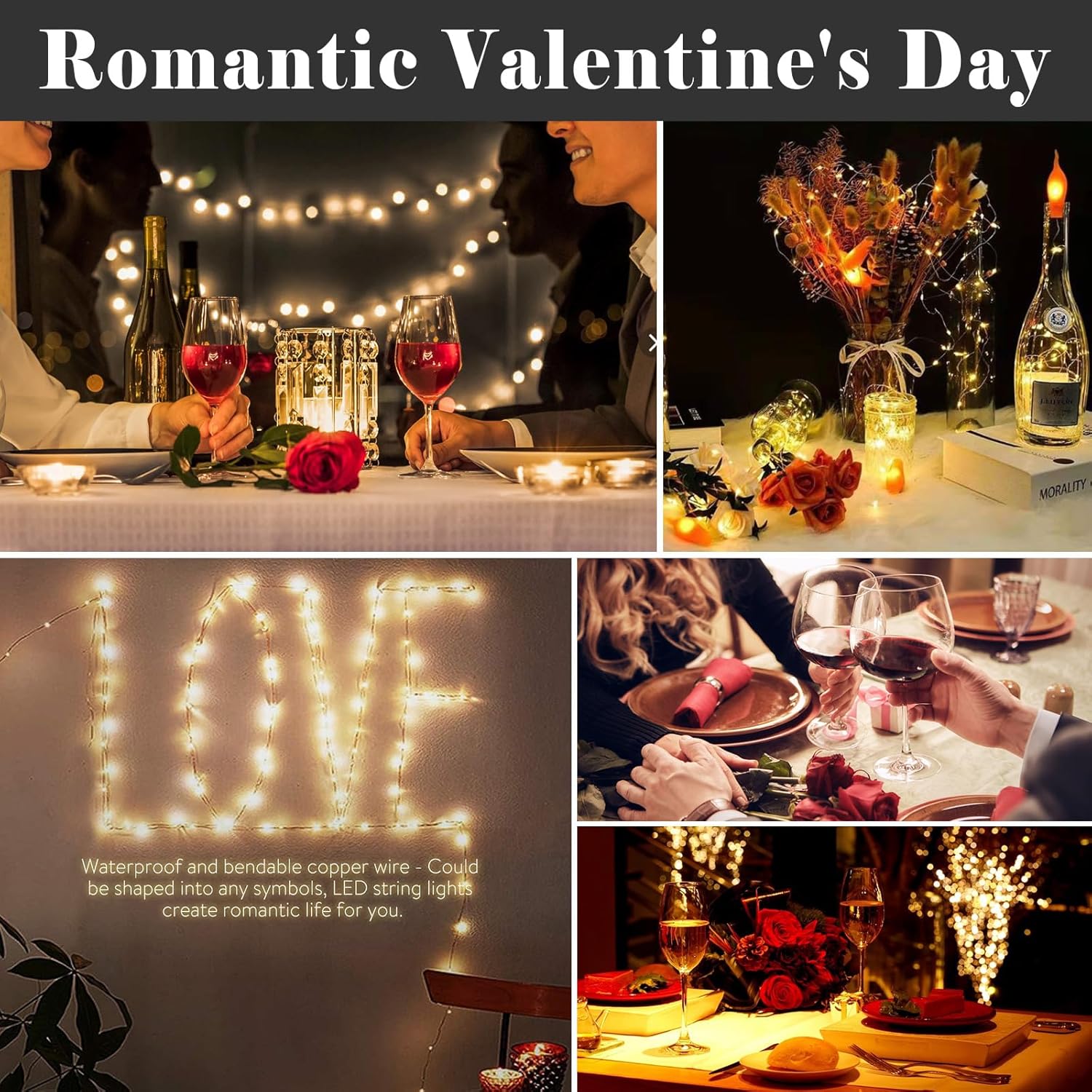 - 3 LIGHTING MODES AND WAIDELY APPLICATION: The fairy lights are super convenient enables to switch 34 flashing modes, Fast Twinkling, Slow Twinkling and Constant Lighting; This versatile battery operated lights can be used for Christmas decoration, holiday, Halloween parties, Valentine's Day, wedding, bedroom and centerpiece table decorations. Giving you different decorative effect and romantic atmosphere
