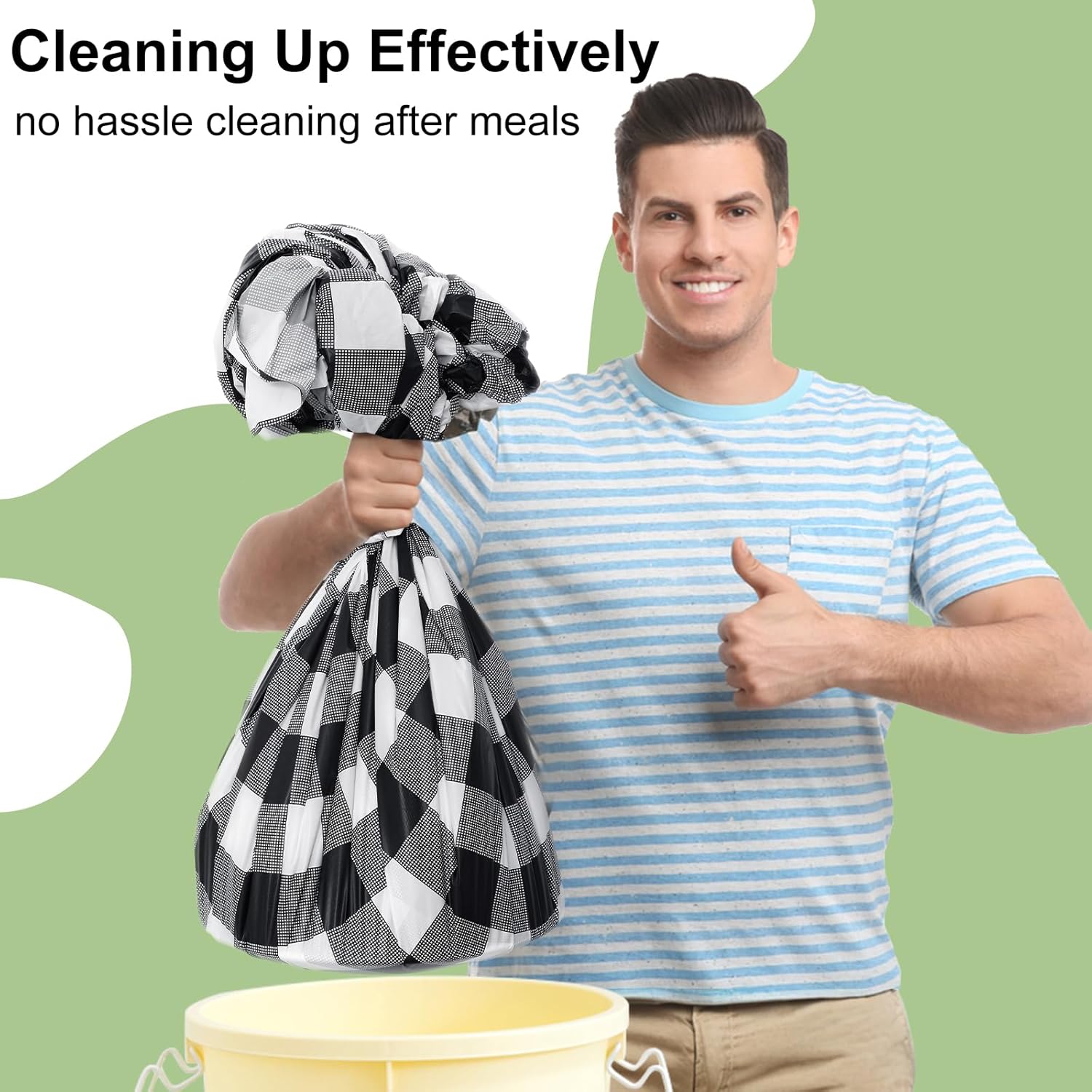 - [No Cleanup Worries] Smiry plastic table covers are designed for convenience, making setup and cleanup a breeze. Portable and lightweight, they easily fit into your bag or picnic basket for dining on the go, wherever you roam.