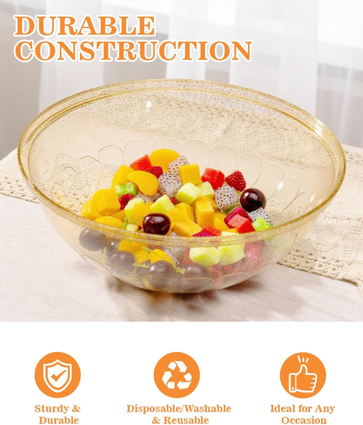 BESTVIP 150oz Glitter Gold Plastic Serving Bowls for Party, 4 Pack 11.6inch Large Disposable Chips Bowl for Salad, Snacks, Candy Dishes for Parties, Christmas, Weddings & Holidays, Events, Reusable