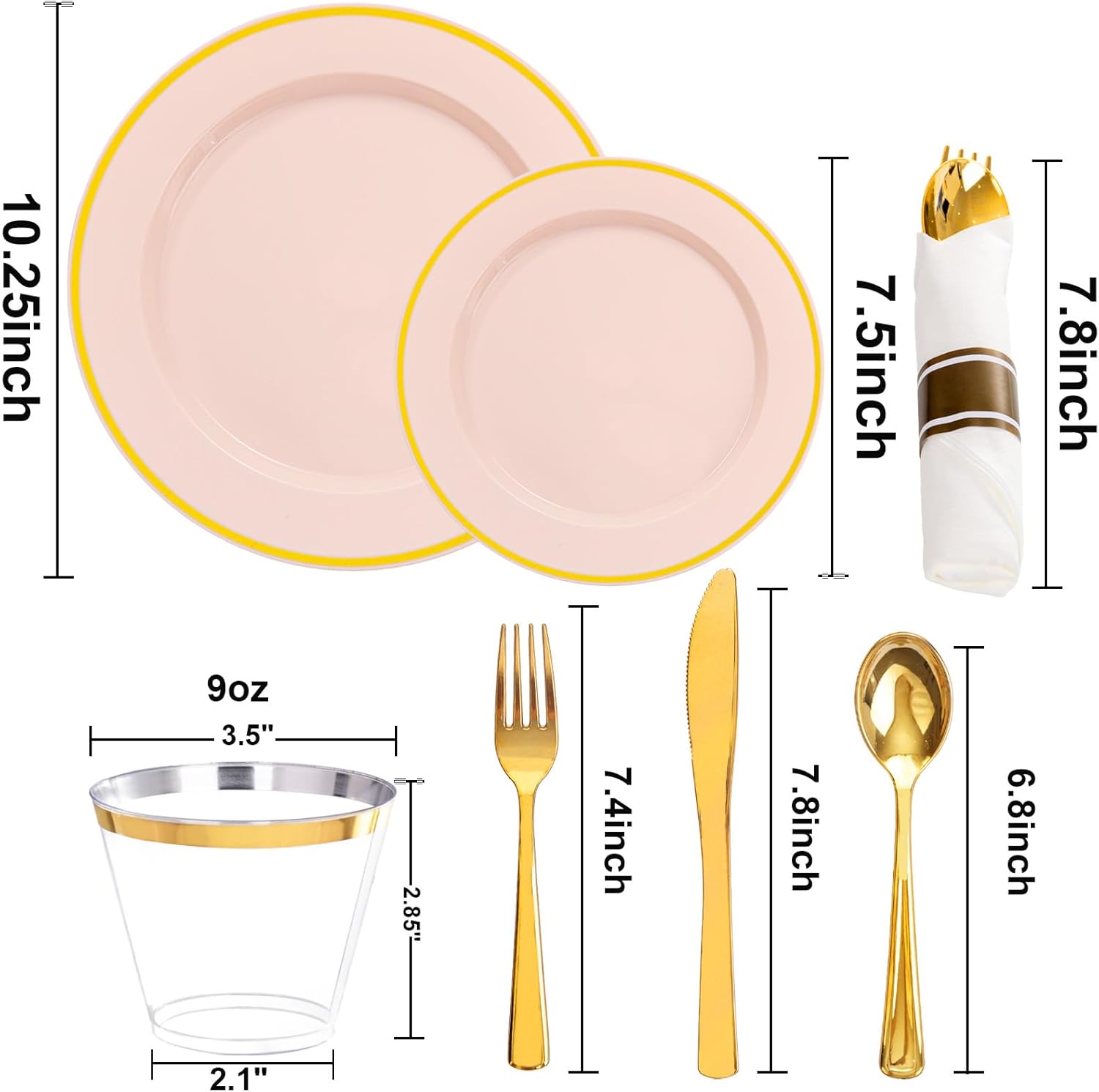 - Perfect for Any Special Occasion: Ideal for a wide range of events, including weddings, birthday parties, anniversary celebrations, and holiday gatherings, this versatile set combines beauty and functionality. With options like gold plates and fancy plastic plates, your special day will be truly memorable with our disposable gold plates and pink party plates.