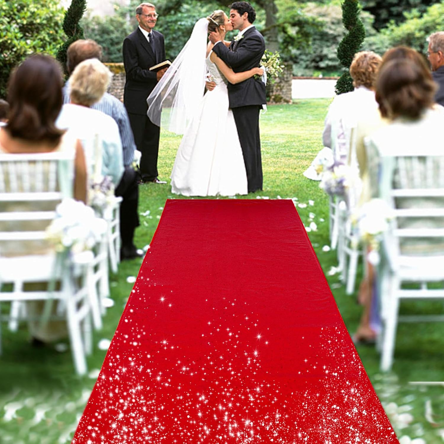 PartyDelight Wedding Aisle Runner for Ceremony Red 4FTx15FT Sequin Carpet Sparkly Rug for Indoor Outdoor Weddings Engagement Decoration