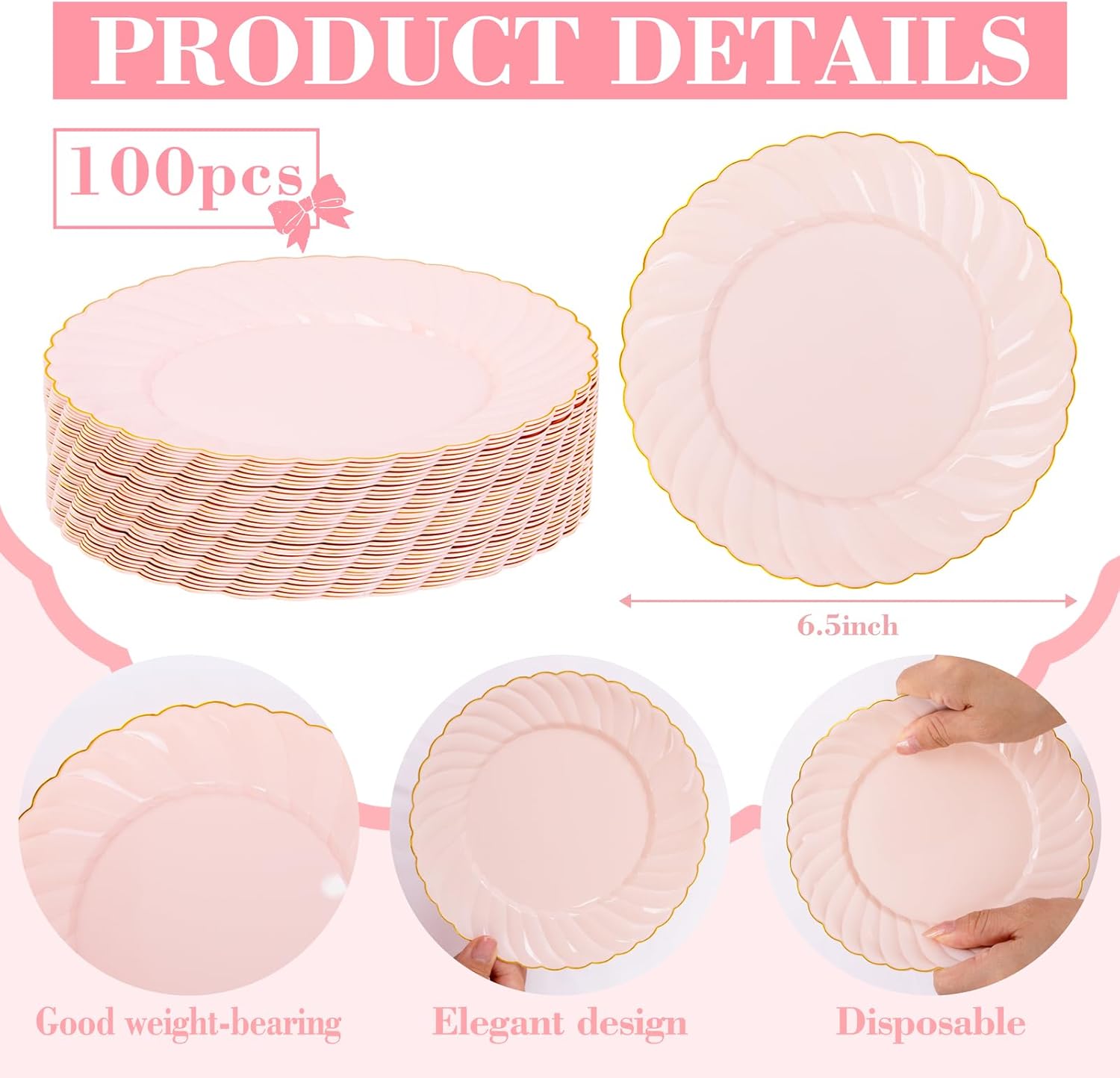 - Value Pack : Great Set to Serve 100 Guests, include 100 pack 6.5 inch pink scalloped plates. Effortlessly equip your gathering with enough elegant tableware within budget, ensuring every guest experiences a cheerful dining experience