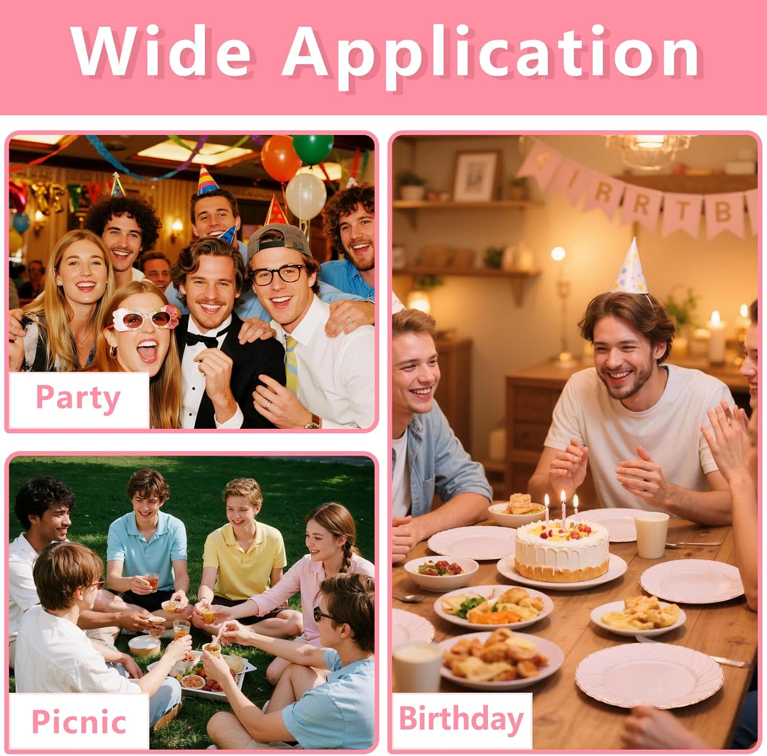 - Safety and Practicality: Made from Food-grade plastic, these pink disposable plates are not only sturdy but also easily hold a variety of foods, from delicate desserts to hearty appetizers, the pink plates heavy-duty ensuring a well dining experience at your event