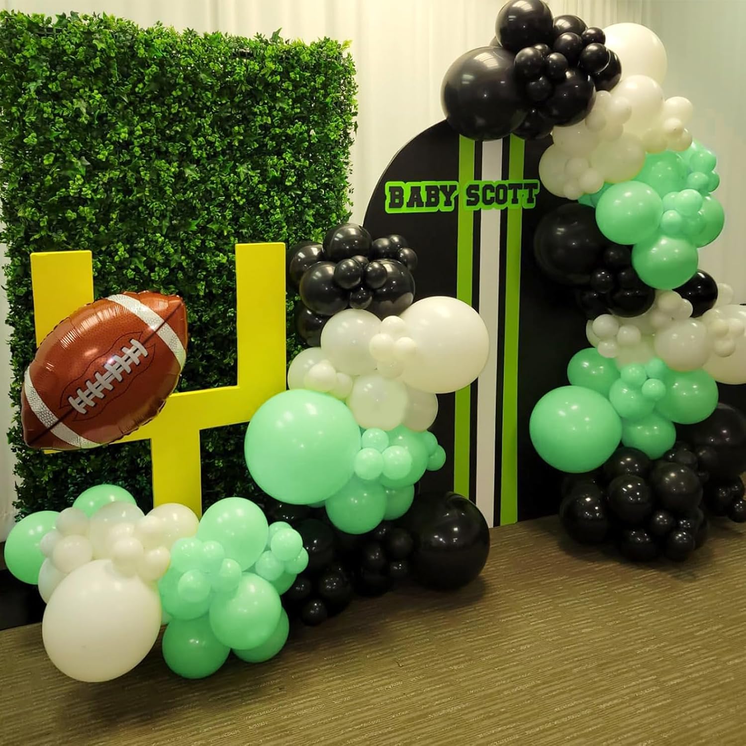 - 150 PCS Makani Green BALLOONS DIFFERENT SIZES: Package includes 18 inch black balloons (5 pcs), 12 inch black balloons (30 pcs), 10 inch black balloons (45 pcs), 5 inch black balloons (70 pcs), 2 pieces of glue, 2 rolls of ribbon.