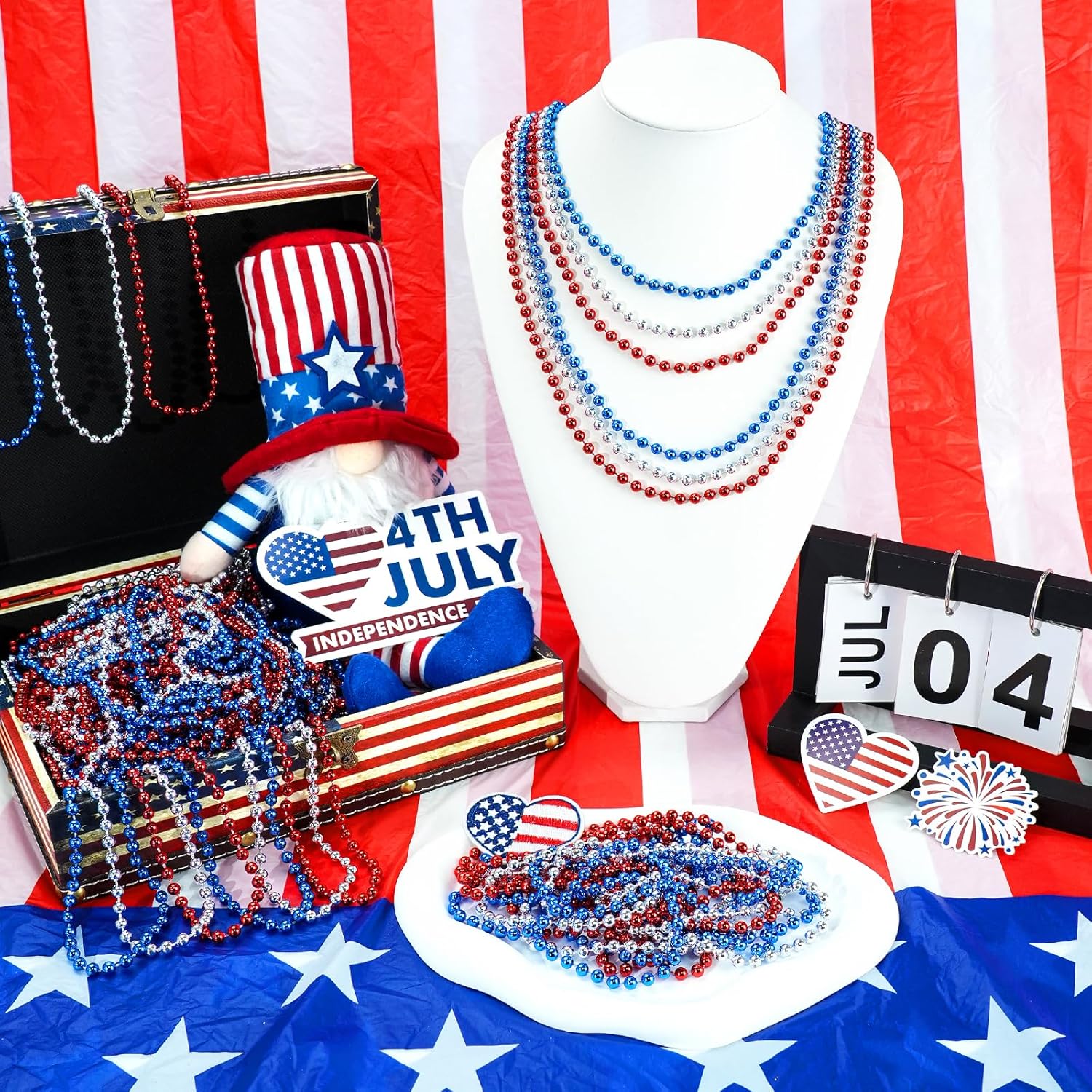 - Premium Blue Bead Necklaces: Patriotic necklaces made of high quality plastic, not easy to fade and damage, lightweight and easy to carry
