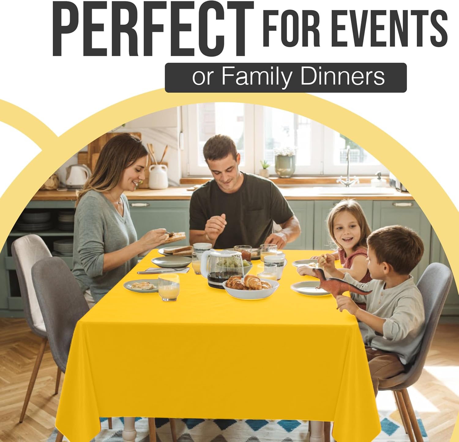 Exquisite 66% Thicker Premium Plastic Table Cloth Rectangle Table Cover 0.5 Mil 12 Pack Yellow Table Cloth 54 Inch x 108 Inch Disposable Tablecloth Won't Tear Easily Like Cheap Thin Brands