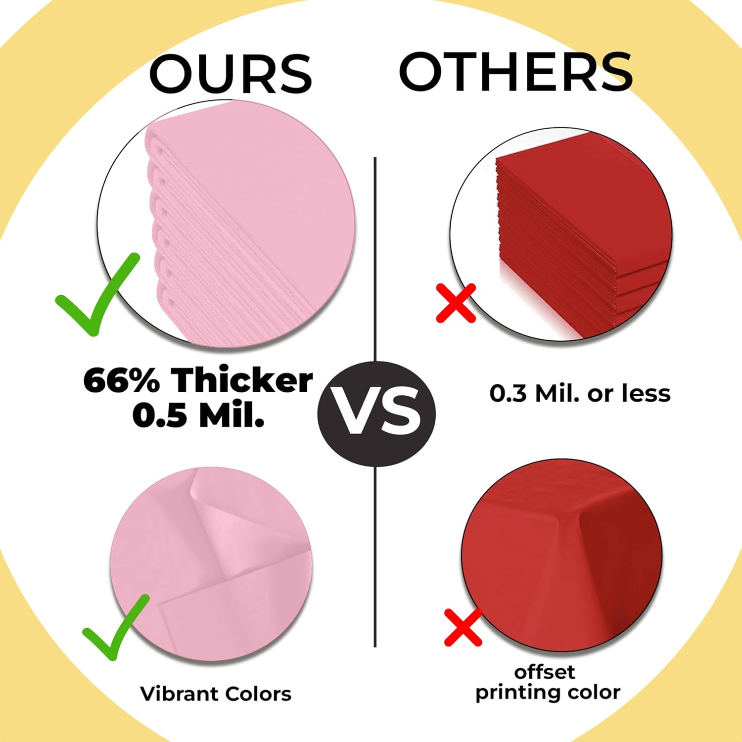 Exquisite 66% Thicker Premium Plastic Table Cloth Rectangle Table Cover 0.5 Mil 6 Pack Pink Table Cloth 54 Inch x 108 Inch Disposable Tablecloth Won't Tear Easily Like Cheap Thin Brands