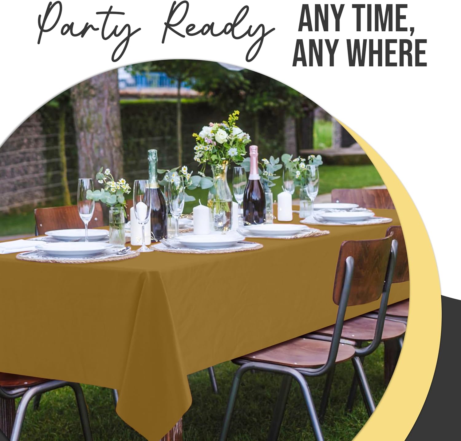 Exquisite 66% Thicker Premium Plastic Table Cloth Rectangle Table Cover 0.5 Mil 12 Pack Gold Table Cloth 54 Inch x 108 Inch Disposable Tablecloth Won't Tear Easily Like Cheap Thin Brands