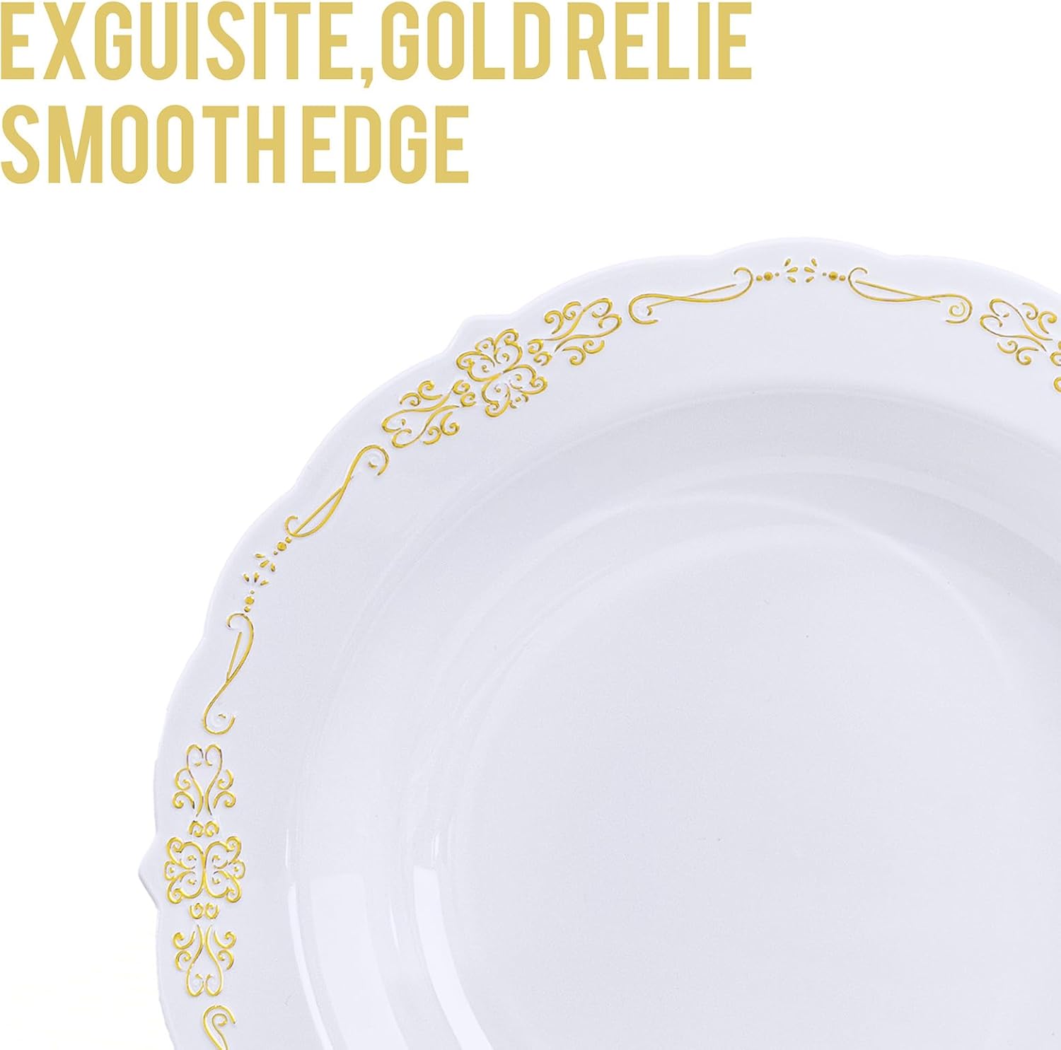 - ELEGANT APPEARANCE - Featuring a glossy finish with white bodies and gold rims, these plastic bowls complement gold silverware beautifully. Each small bowl is designed with a wide rim for easy handling while minimizing the risk of burns. Whether at an extravagant event or an intimate family dinner setting, they add sophistication and refinement to any table.