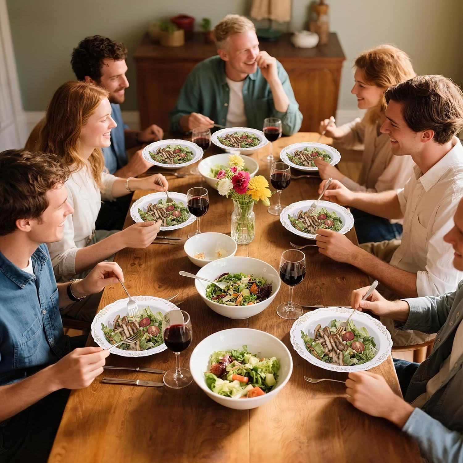 - STURDY & DURABLE - These disposable plastic bowls are crafted from heavy-duty plastic, ensuring resistance to bending and breaking. The gold-accented bowls maintain their shape and integrity even when holding hot soups, cold dishes, or heavier foods. Additionally, you can wash and store these soup bowls in a dry place for future reuse.