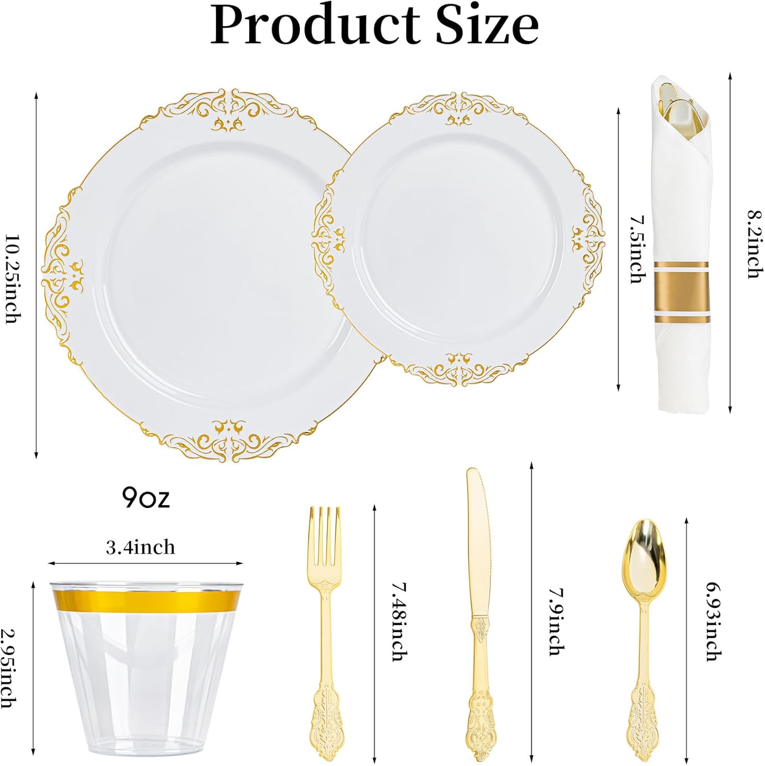 - Versatile for Weddings, Holidays & More: From wedding disposable dinnerware to BBQs, this gold plastic dinnerware set adapts to any event—formal or casual—with effortless style