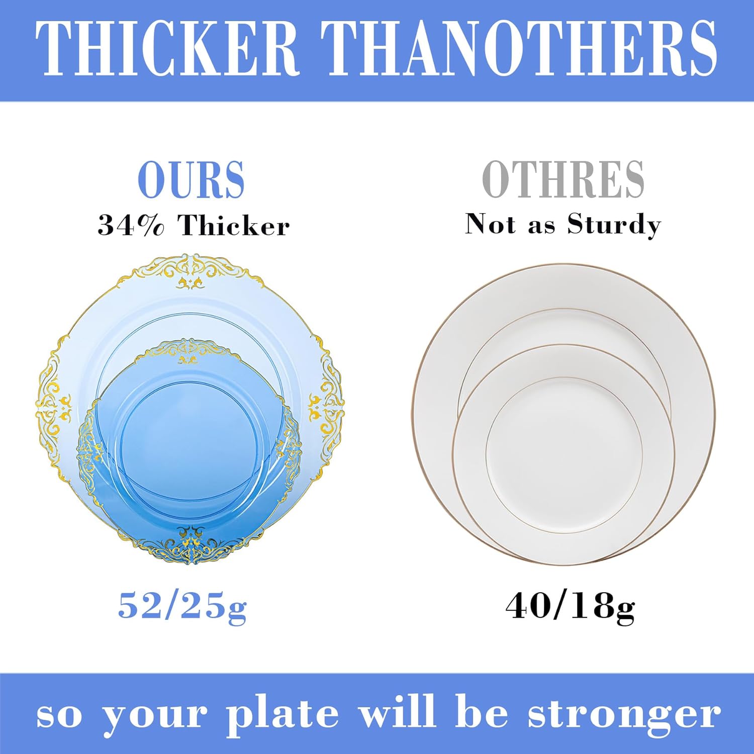 - Versatile for Modern & Themed Events: Blue-and-gold contrast suits art deco weddings, VIP parties or New Year’s Eve dinners plastic dinnerware sets (e.g., red/white/blue themes). Pairs with gold sets for mix-and-match tablescapes