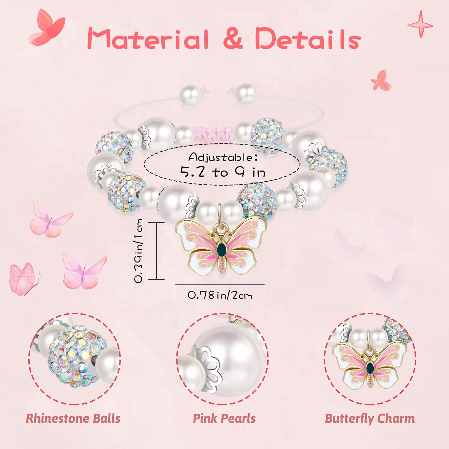 - π¦ Pink Pearl & Butterfly Design: This butterfly jewelry is composed of shiny rhinestone crystal balls and pink & white pearls, and is equipped with a beautiful butterfly pendant, symbolizing beauty and good luck. Wonderful butterfly gifts make your girls wear this butterfly charms for bracelet could move forward bravely.