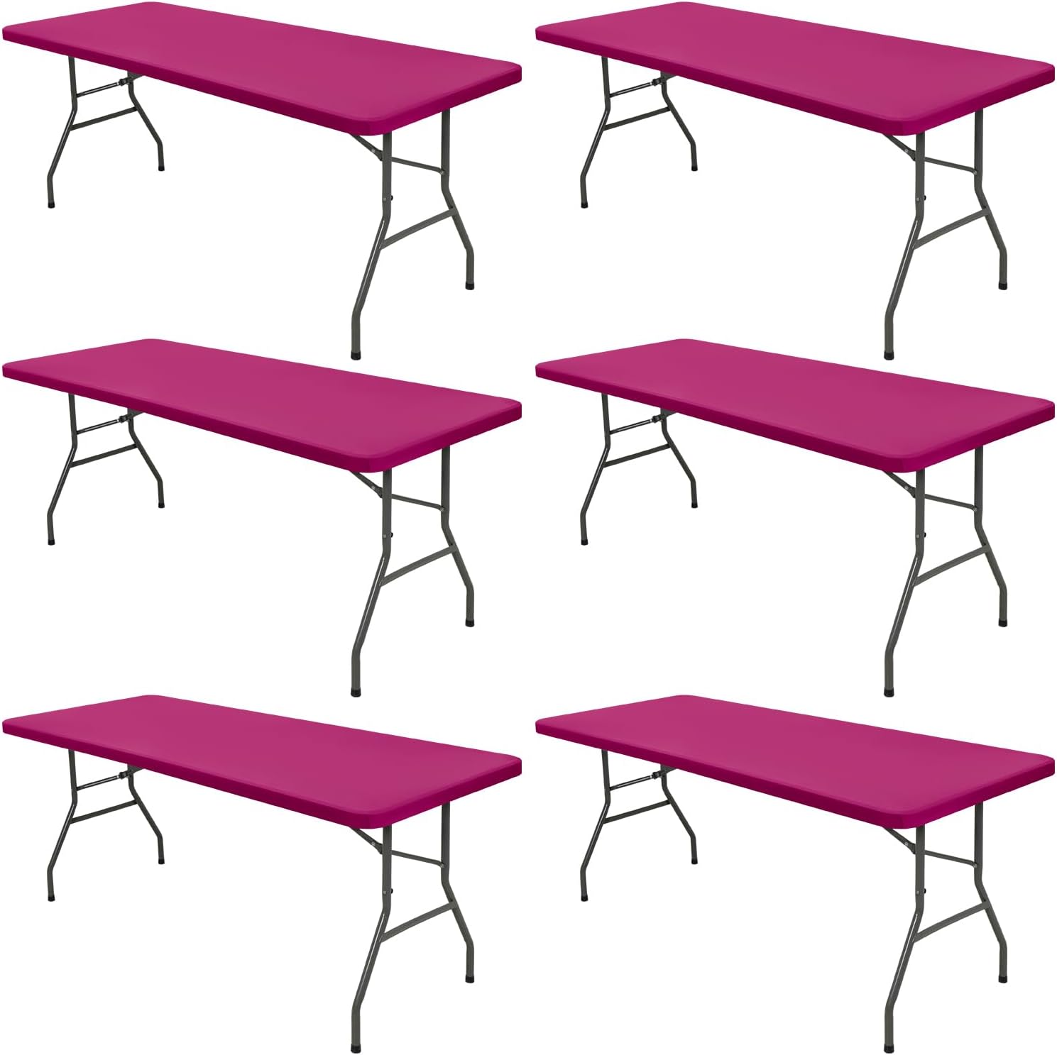 6 Pack Picnic Table Cover Elastic Fitted Outdoor Tablecloths for 8 Foot Rectangle Tables Waterproof Stretch Washable Patio Folding Spandex Table Cloth Camping Banquet Parties (Hot Pink,30" x 96")