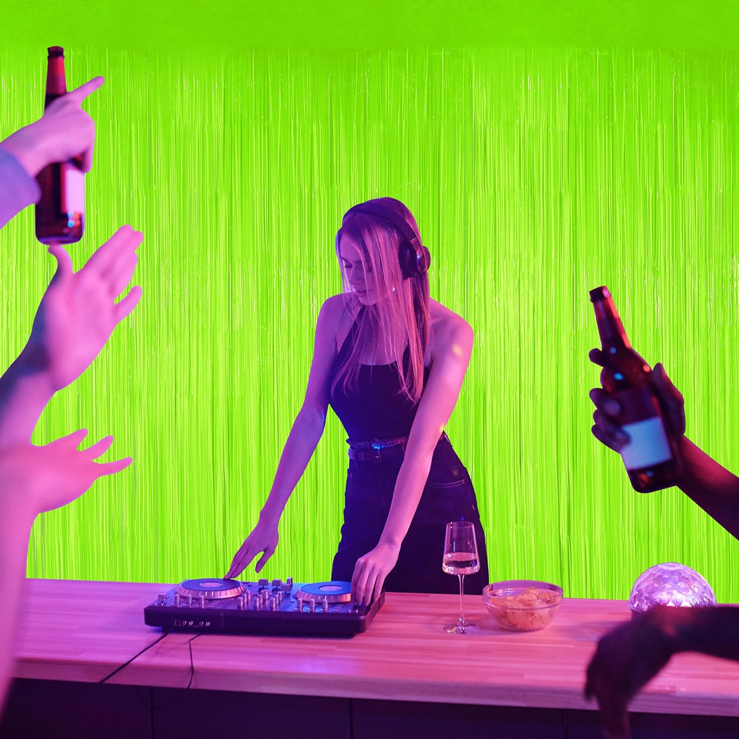 - Neon Party Supplies: Mix and match with other neon balloons, neon streamers glow tape, neon poster board to become the visual center of party decoration. Foil Fringe Curtains is perfect for glow party accessories, live streamer backdrop, dessert table backdrop, bar backdrop, live streamer backdrop, office backdrop decoration, Halloween glow parties, or holiday neon decor