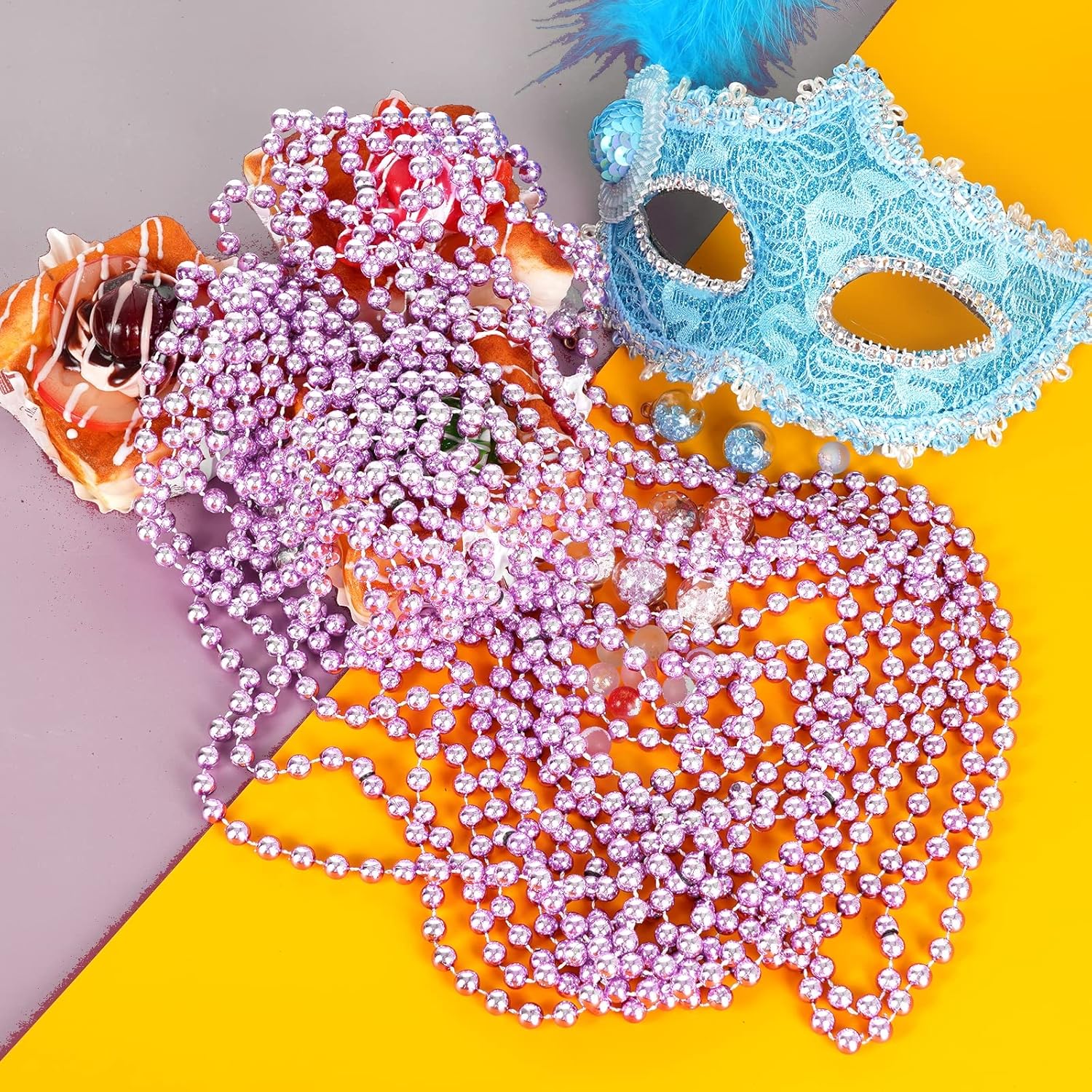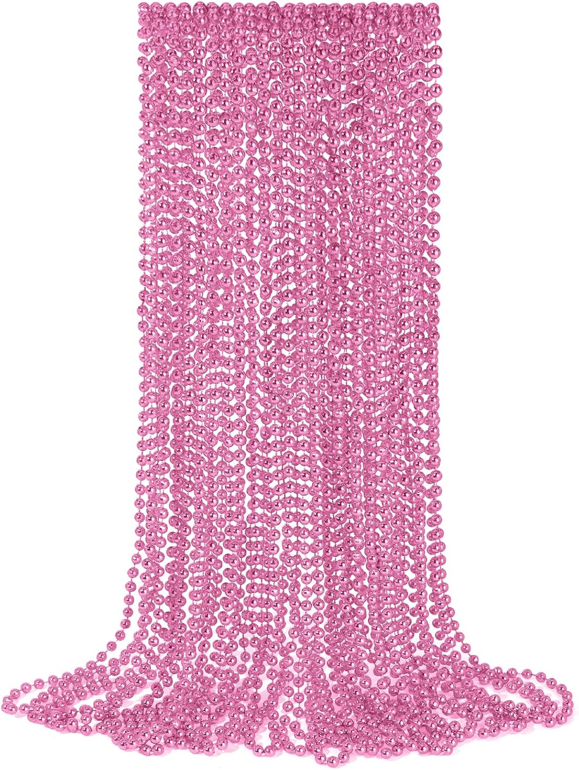 - Mardi Gras Beads: 24 pcs of pink bead necklaces bulk, light pink party bead necklace, comes in classic Mardi Gras colors. The Mardi Gras beads necklace make perfect accessories for Mardi Gras party and Parades