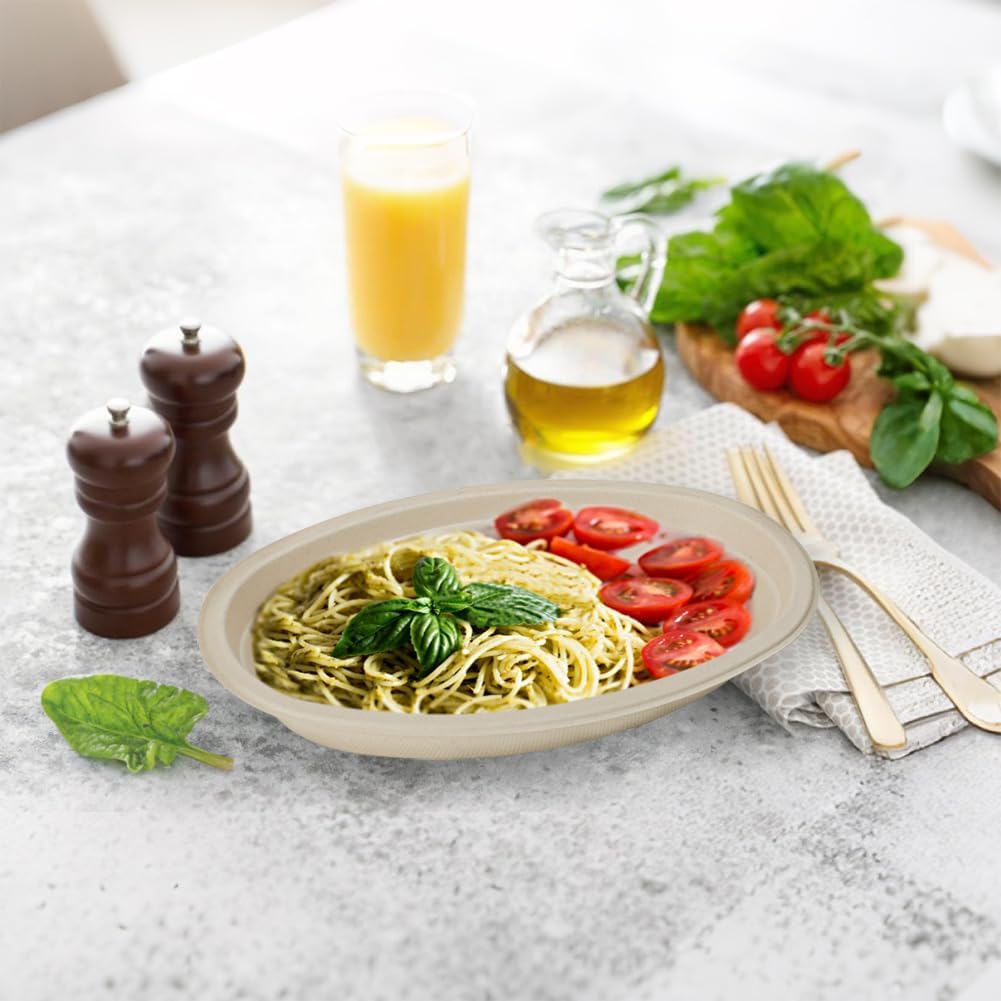 - Size and Capacity: These oval paper bowls measure 9.5"(L) x 6.15"(W) x 1.57"(H) with a 28 oz capacity. You will get 50 count disposable paper bowls, plentiful quantity, meet your daily needs.